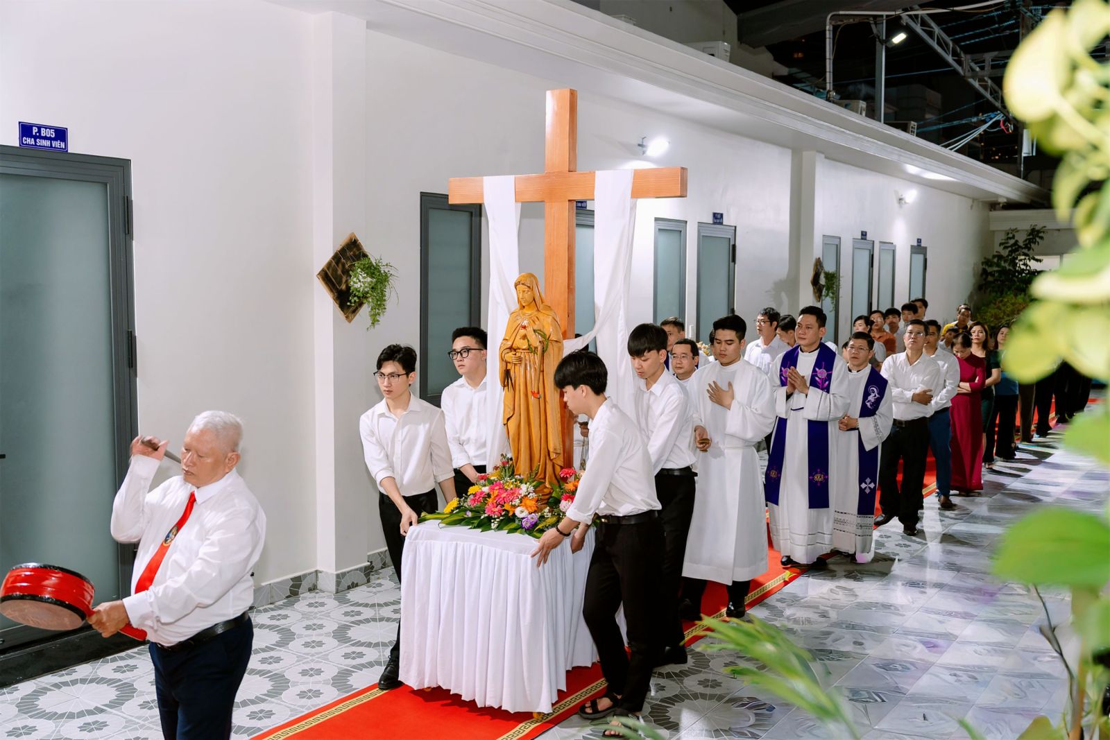 Vào lúc 18g00, ngày 04/4/2026, cộng đoàn cùng Mẹ Maria sốt sắng bước đi qua 14 chặng Đàng Thánh Giá. Mỗi chặng dừng chân là một khoảnh khắc lắng đọng, giúp người tham dự chiêm ngắm cuộc thương khó của Chúa Giêsu và cảm nhận nỗi đau của người Mẹ đứng dưới chân thập giá. Bầu khí thinh lặng, những lời suy niệm sâu sắc và những bước chân chậm rãi đã giúp mỗi người như được chạm đến chiều sâu của tình yêu cứu độ. Con đường thập giá không còn là câu chuyện xa xưa, nhưng trở thành hành trình của chính đời sống hôm nay – nơi mỗi người mang theo những thập giá riêng để hiệp thông với Chúa.