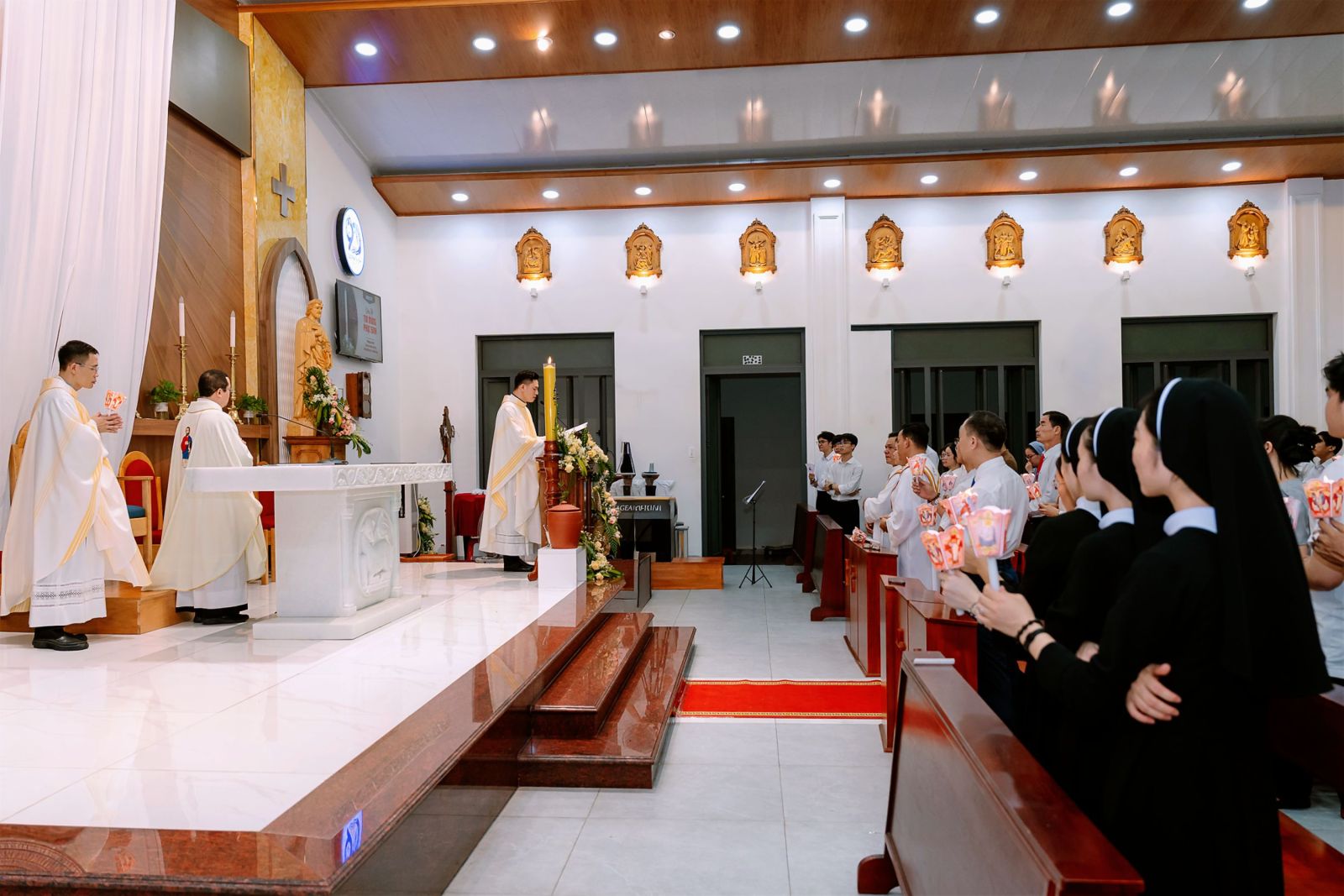 Thánh lễ khép lại trong niềm vui Phục sinh tràn đầy khi quý cha trao tặng những quả trứng Phục sinh cho cộng đoàn – dấu chỉ của sự sống mới và niềm hy vọng. Mỗi quả trứng nhỏ bé nhưng mang theo thông điệp lớn lao: từ ngôi mộ tối tăm đã bừng lên sự sống, từ đêm dài đã xuất hiện bình minh. Cộng đoàn ra về với niềm xác tín rằng ánh sáng Phục sinh vẫn tiếp tục tỏa chiếu trong đời sống thường ngày, nơi mỗi người được mời gọi trở thành chứng nhân của hy vọng và tình yêu.