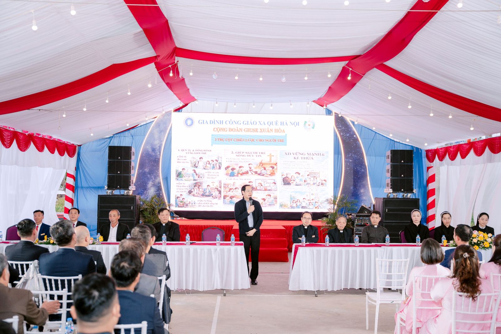 Mở đầu chương trình là buổi hội thảo với những chủ đề xoay quanh đời sống cộng đoàn nơi đất khách. Đặc biệt, chủ đề chính hướng đến những thách đố mà người trẻ đang gặp phải nơi môi trường xã hội phức tạp, những tuyên truyền giả dối dễ dẫn người trẻ đến lối sống vô luân, cuộc sống hướng thụ từ đó làm các em xa rời Đức tin. Trước thực trạng đau lòng ấy, quý cha đã gợi lên những thao thức và kinh nghiệm sâu sắc về tâm lý giáo dục người trẻ, kéo các em đến với những sinh hoạt cộng đoàn để gần Chúa và yêu mến Giáo Hội hơn. Từ đó, chính các em là những người rao truyền Đức tin nơi môi trường học tập và làm việc.