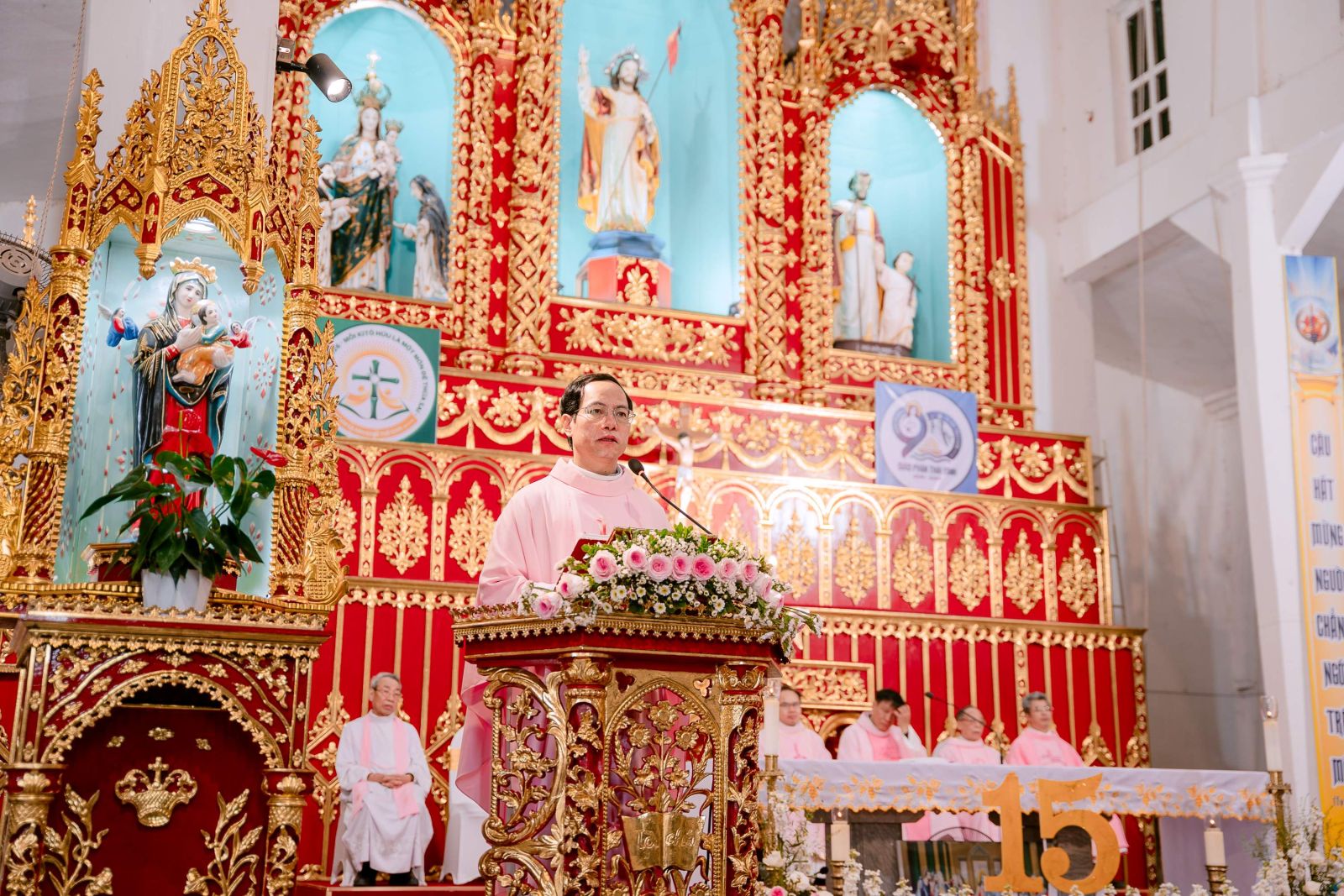 Kết thúc buổi hội thảo, cộng đoàn tập trung về sân Trung tâm Mục vụ Giáo xứ để rước kiệu Thánh Giuse, cùng đoàn đồng tế tiến ra Thánh đường hiệp dâng Thánh lễ mừng kính Thánh Giuse – bạn trăm năm Đức Trinh Nữ Maria, Bổn mạng cộng đoàn.