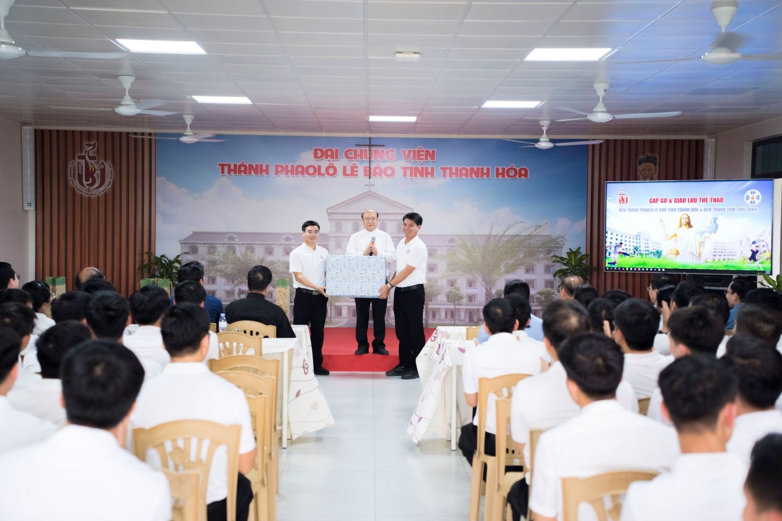 Ngay khi đặt chân đến ĐCV Thánh Phaolô Lê Bảo Tịnh Thanh Hoá, đoàn đã được đón tiếp cách nồng hậu và cởi mở. Sau những giây phút gặp gỡ ban đầu, anh em quy tụ tại hội trường để bước vào chương trình sinh hoạt chung.
