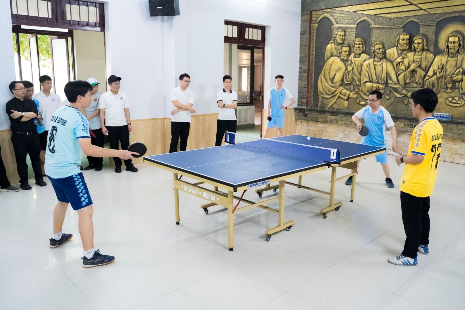 Bước sang phần sinh hoạt buổi chiều, bầu khí trở nên sôi động và đầy hứng khởi với các hoạt động giao lưu thể thao. Anh em chủng sinh hai bên đã cùng tham gia thi đấu các bộ môn như bóng bàn, pickleball và bóng đá. Các trận đấu diễn ra sôi nổi, hào hứng nhưng vẫn giữ được tinh thần cao thượng và huynh đệ. Những pha bóng đẹp mắt cùng sự cổ vũ nhiệt tình đã góp phần tạo nên một bầu khí tràn đầy sức sống và niềm vui.