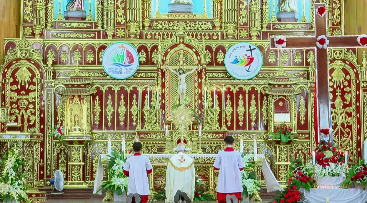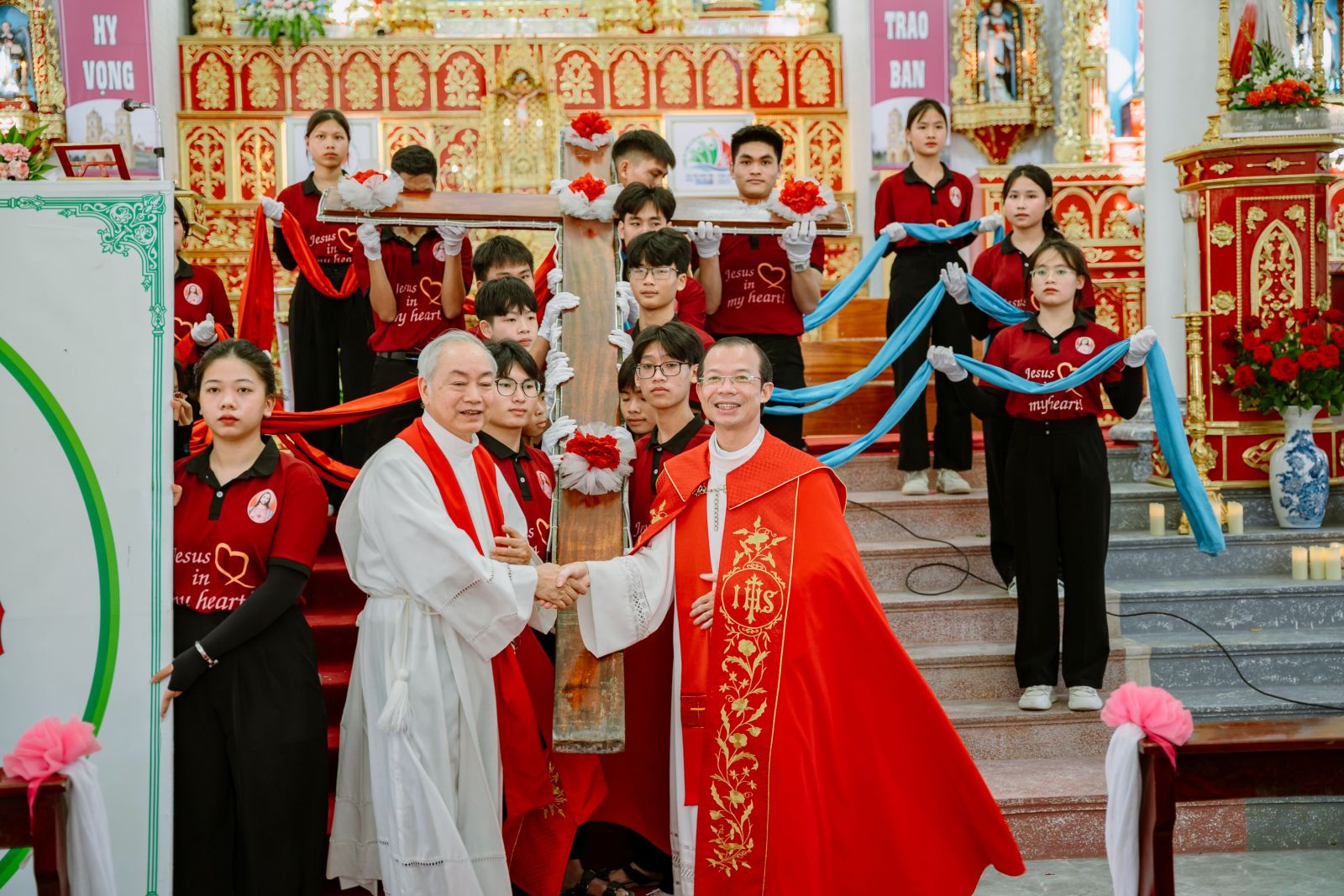 Hành trình đón và cung nghinh Thánh Giá khép lại, sau giờ Chầu Thánh Thể chiều thứ Bảy (ngày 11/10/2025) Giáo xứ Đền Thánh Cao Mại chuyển trao Thánh Giá ĐHGT GTHN LẦN XXI cho Giáo xứ Thanh Nê.
