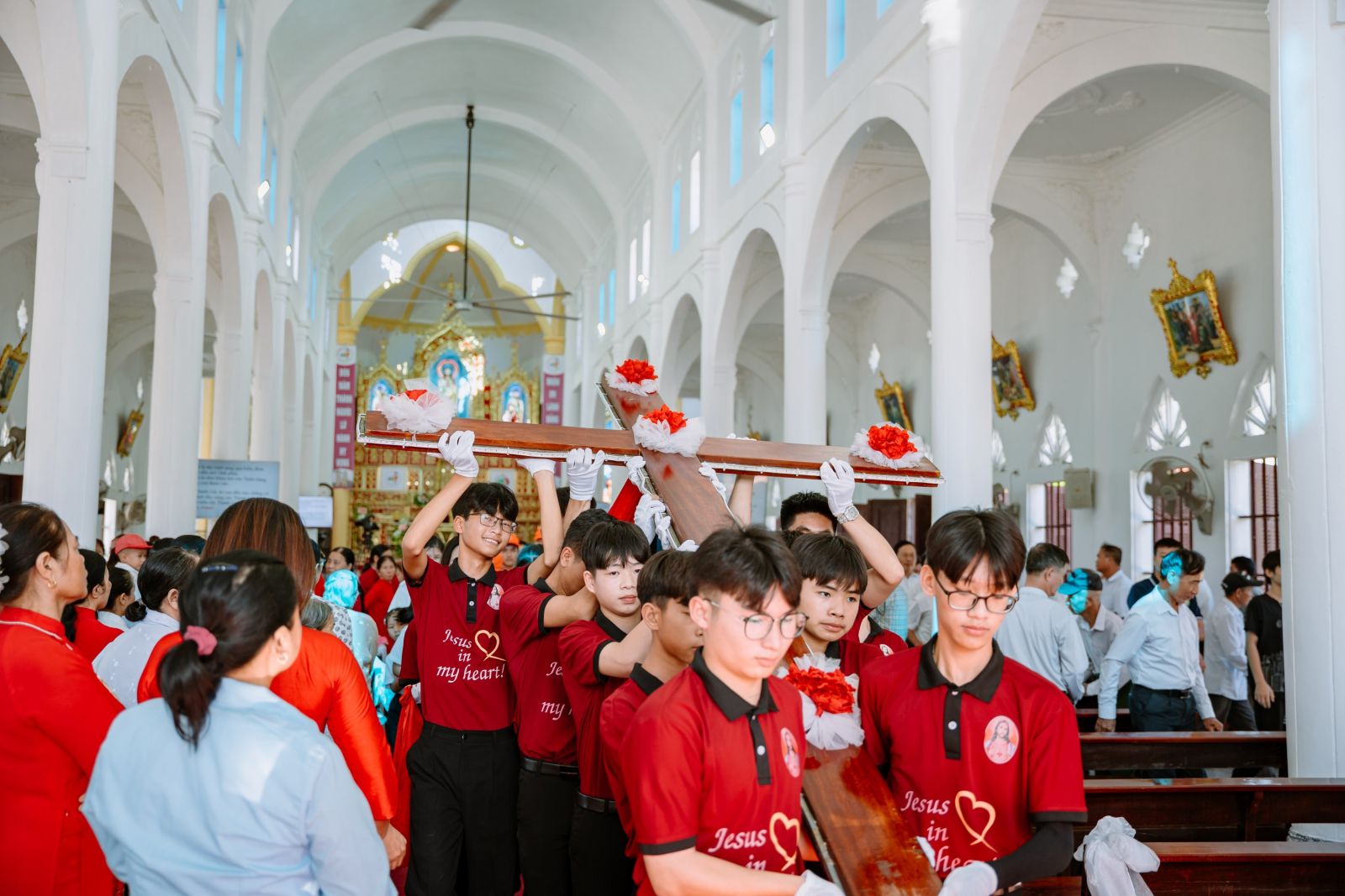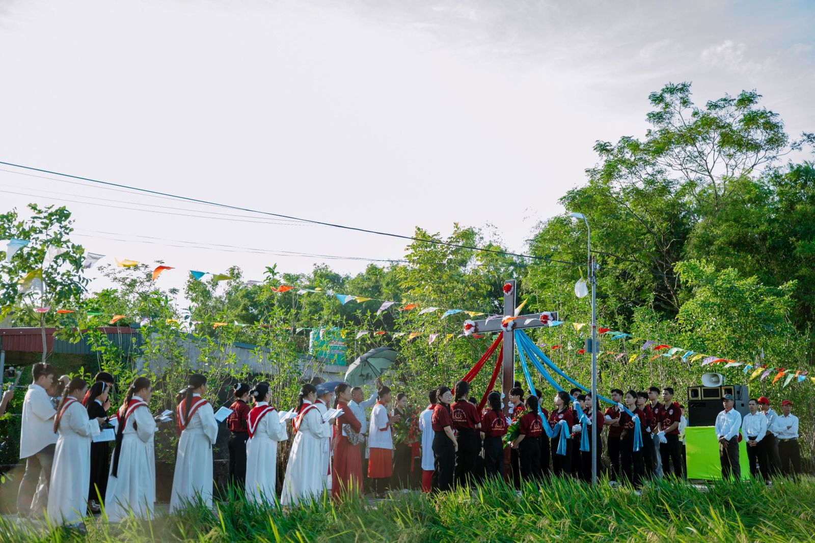 Đoàn rước khởi hành tiến về Giáo họ Cao Đường, suy niệm 14 chặng Đàng Thánh Giá, sau đó hiệp dâng Thánh lễ Suy tôn Thánh Giá tại Giáo họ. Thánh lễ được cử hành thật trang trọng và sốt sắng.