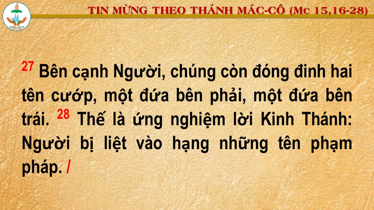 • Đọc Tin Mừng theo Thánh Mác-cô: Chương 15,16-28