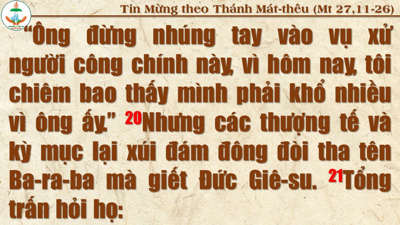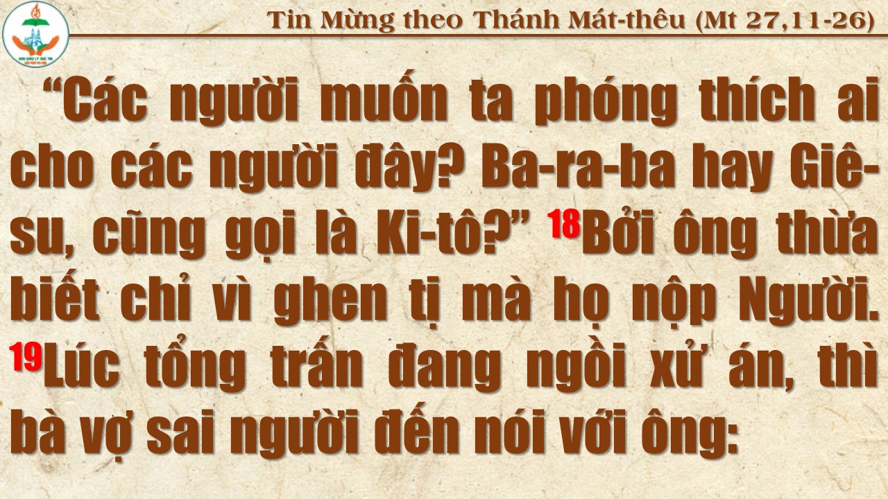 Đức Giê-su bị giải đến tổng trấn Phi-la-tô - Giu-đa đi thắt cổ
