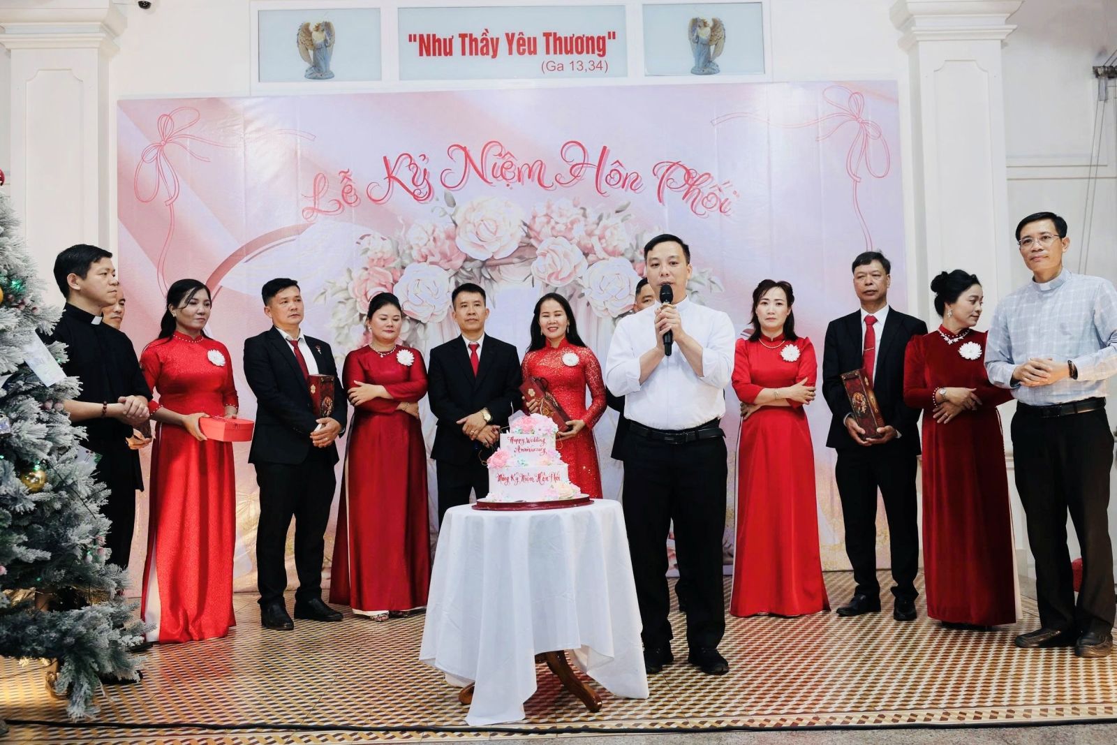 Trong phần chia sẻ Lời Chúa, cha phó Trụ sở Giuse Nguyễn Ngọc Tuấn đã nhấn mạnh rằng hạnh phúc viên mãn lấp đầy mọi khoảng trống trong đời sống gia đình chính là sự hiện diện sống động của Thiên Chúa: “Tình yêu Thiên Chúa ở với họ, gìn giữ và bảo vệ gia đình các anh chị.” Ngài mời gọi các đôi vợ chồng tiếp tục trung thành với giao ước hôn nhân đã cam kết trước mặt Chúa, kiên trì xây dựng đời sống đức tin nơi gia đình, và giữ vững niềm cậy trông giữa những biến động của xã hội hôm nay. Mỗi gia đình, theo ngài, chính là một “Giáo hội tại gia”, nơi Tin Mừng được sống và lan tỏa qua những cử chỉ rất đỗi bình dị: một lời xin lỗi chân thành, một hành động tha thứ, hay những bữa cơm gia đình ấm áp yêu thương.