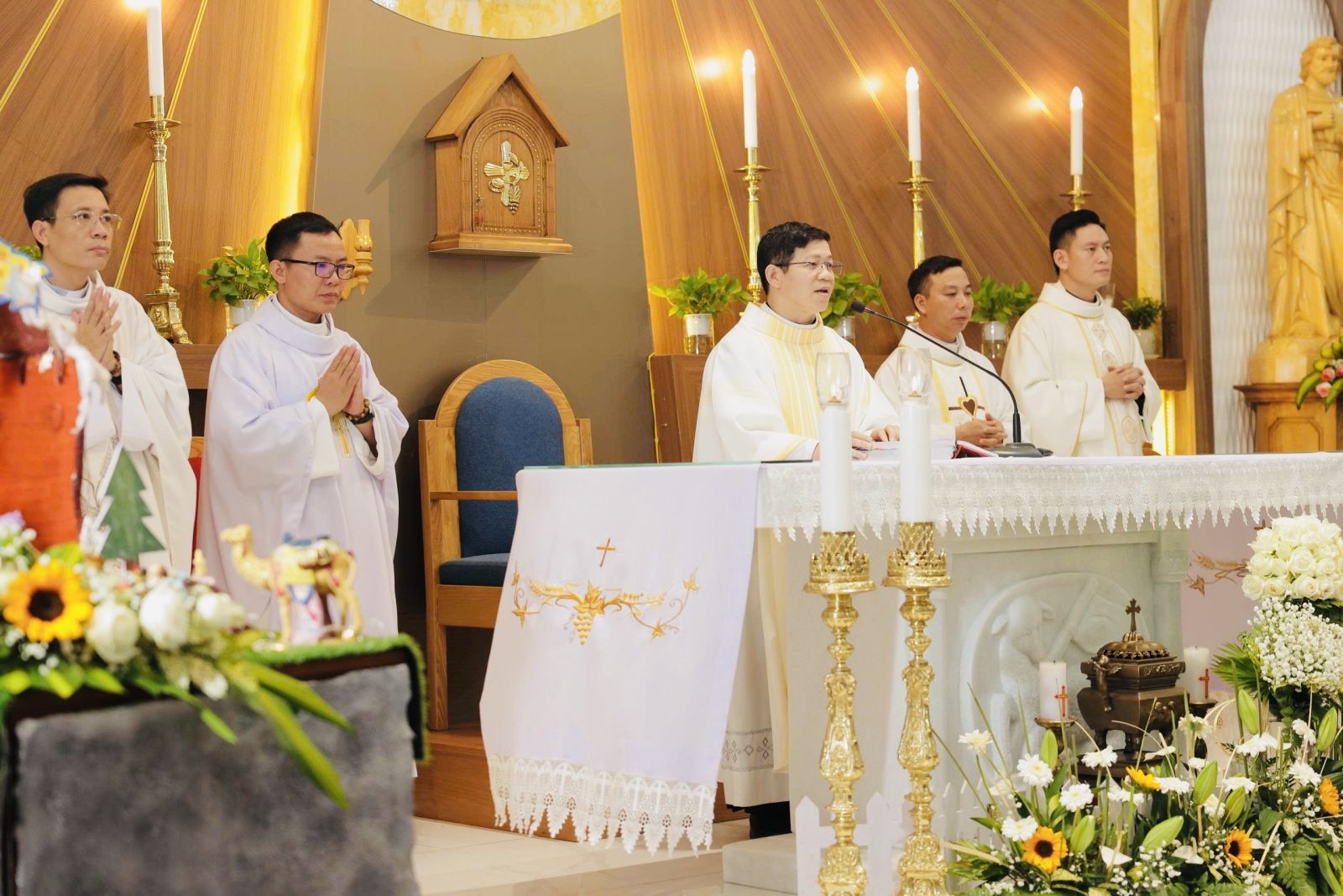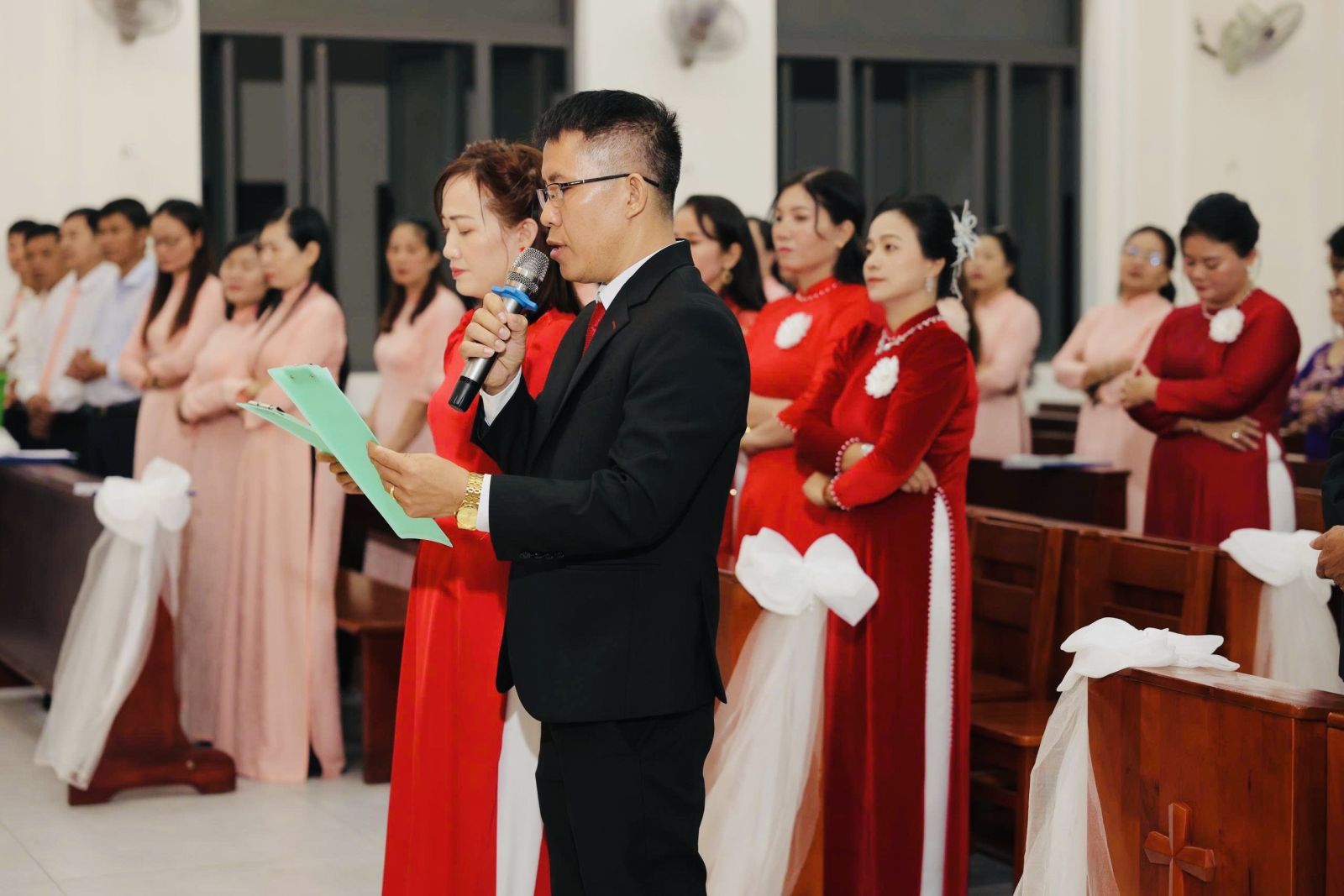 Thánh lễ do cha Phê-rô Ver. Phạm Văn Nhật – Giám đốc Trụ sở, đặc trách Đồng hương Miền Nam– chủ tế, cùng sự hiện diện hiệp thông của cha phó Trụ sở và quý cha. Bầu khí phụng vụ diễn ra trang nghiêm, ấm cúng và thấm đượm tình gia đình, tình hiệp nhất của những người con xa quê nhưng chung một cội nguồn đức tin. Hiện diện trong Thánh lễ, năm gia đình không chỉ cùng nhau kỷ niệm chặng đường hôn nhân 15, 20 năm, mà trên hết là dâng lên Thiên Chúa lời tri ân sâu xa vì biết bao ơn lành Ngài đã ban: từ những ngày hạnh phúc ngập tràn tiếng cười cho đến những giai đoạn thử thách, gian nan, khi tình yêu cần được thanh luyện bằng hy sinh, nhẫn nại và tha thứ.
