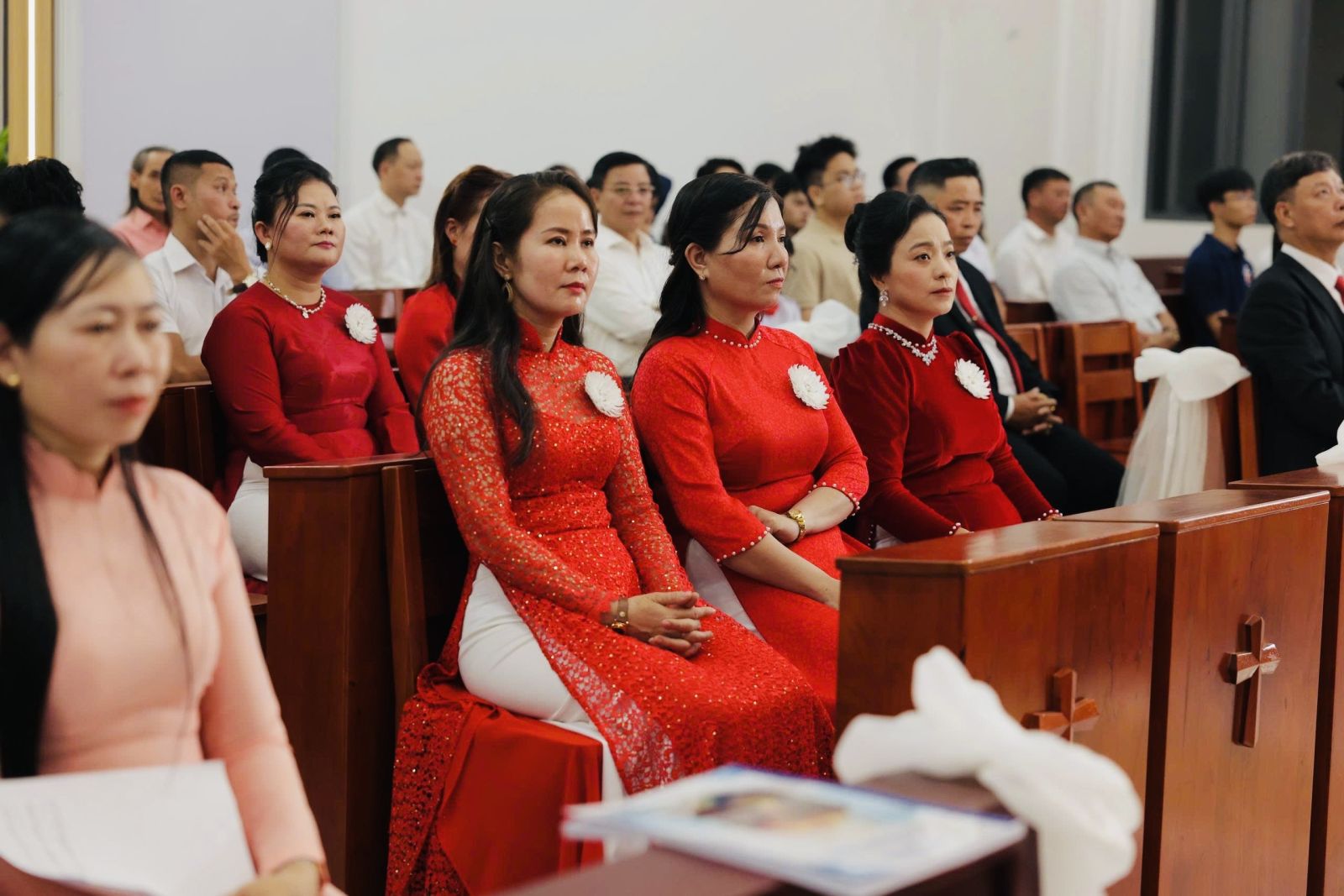 Kết thúc Thánh lễ, các gia đình long trọng đón nhận Phép lành Tòa Thánh của Đức Thánh Cha Lê-ô XIV qua cha chủ tế, cùng những bó hoa tươi thắm và lời chúc mừng đầy yêu thương từ con cái và cộng đoàn. Những khoảnh khắc chụp hình lưu niệm và chia sẻ niềm vui trong tình huynh đệ đã để lại nhiều xúc động, phản chiếu rõ nét hành trình hôn nhân được dệt nên từ yêu thương, hy sinh và ân sủng Chúa.