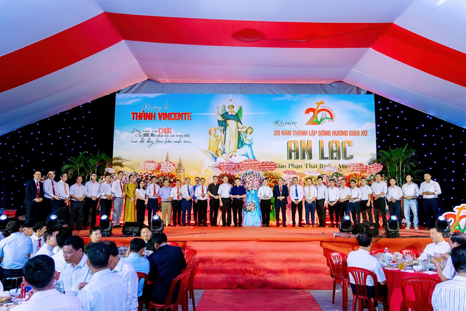 Vào lúc 17g30, Thánh lễ đồng tế được Đức cha Đa-minh Đặng Văn Cầu chủ tế. Trong bài giảng, Đức Cha Đa-minh đã chia sẻ về sứ mạng loan báo Tin Mừng của người Ki-tô hữu qua hình ảnh Thánh Vinh-sơn – vị Thánh Bổn mạng rực cháy ngọn lửa Thánh Thần, hăng say rao giảng Tin Mừng và kêu gọi hoán cải khắp nơi. Đức cha nhấn mạnh rằng, noi gương thánh nhân, mỗi người con An Lạc, dù ở cương vị hay nghề nghiệp nào cũng có thể trở nên người loan báo Tin Mừng bằng chính đời sống hằng ngày. Đức cha đã nhắc đến khẩu hiệu giám mục của Đức Giáo Hoàng Lê-ô XIV là “In Illo uno unum” (Trong Đấng duy nhất, chúng ta là một) như lời mời gọi đồng hương Giáo Xứ An Lạc và cộng đoàn đồng hương Giáo phận Thái Bình-Miền Nam: Hãy sống hiệp nhất với dân Chúa Tổng Giáo phận Sài Gòn và các giáo phận nơi bà con sinh sống, mặc dù chúng ta vẫn những người con xa quê Thái Bình luôn hướng về quê hương. Đức cha ước mong rằng, nhờ lời chuyển cầu của Thánh Vinh-sơn, cộng đoàn An Lạc luôn giữ vững tinh thần nhiệt thành, tỉnh thức và hiệp nhất trên hành trình đức tin.