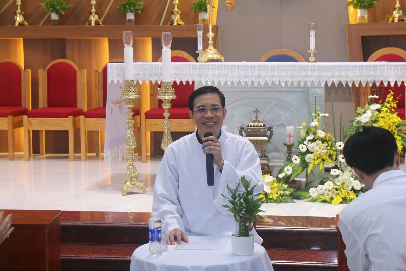 Buổi tĩnh tâm mở đầu bằng cuộc gặp gỡ thân tình của cha Đồng hành Giu-se. Ngài chào mừng những anh em mới gia nhập cộng đoàn, chúc mừng những anh em có ngày sinh trong tháng 11, và đặc biệt nhắc nhớ ý cầu nguyện chung trong tháng, hướng lòng về quê nhà để cùng hiệp thông cầu nguyện với Giáo phận mẹ Thái Bình. Những lời nói chân tình, giản dị mà sâu sắc của cha đã khơi lên nơi anh em cảm thức hiệp nhất – rằng dù đang ở phương Nam, mỗi người vẫn luôn gắn bó và đồng hành trong cùng một gia đình Giáo phận.