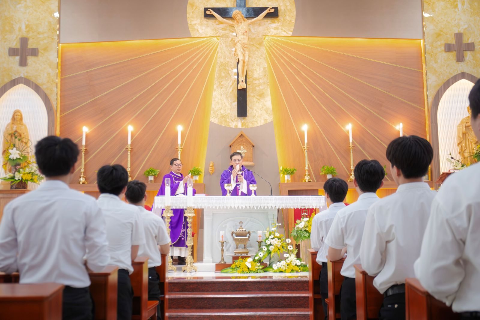 Đỉnh cao của buổi tĩnh tâm là Thánh lễ trọng thể cầu nguyện cho các Đẳng Linh Hồn do cha Đặc trách Giu-se chủ tế. Trong bài giảng, cha Gio-an mời gọi anh em cầu nguyện đặc biệt cho các linh hồn đang được thanh luyện, đồng thời nhấn mạnh rằng “cầu nguyện cho các linh hồn là một khoản đầu tư không bao giờ lỗ”, bởi đó là hành vi của Đức tin, của tình yêu thương, bác ái, nối kết giữa Hội thánh Lữ Hành và Hội thánh Thanh Luyện.
