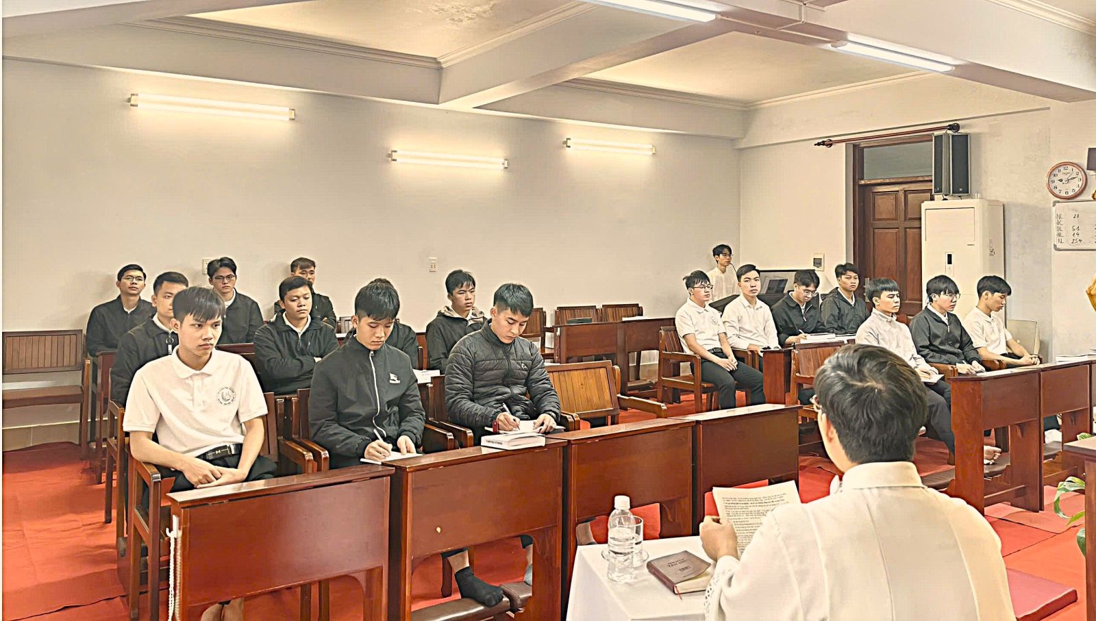 Khởi đầu buổi tĩnh tâm, cha Đặc trách Giu-se gặp gỡ, mời gọi anh em nhìn lại đời sống của mình trong thời gian qua, để mỗi anh em có thể hồi tâm để đón chờ Chúa Giáng Sinh. Dựa vào lời của kinh “Thú Nhận” cha khuyên anh em nên xưng tội mỗi tháng một lần để anh em có thể ý thức được thân phận yếu đuối, bất toàn và luôn cần đến Ơn Chúa trợ giúp. Cha chia sẻ rằng: Việc được cộng tác trong Thánh lễ Truyền chức của giáo phận, hay ĐHGT GTHN, là cơ hội quý giá cho anh em được học hỏi, rèn luyện bản thân trong việc tổ chức, hy sinh phục vục…; đồng thời cha mời gọi anh em tham dự ngày “Đại Hội Những Người Khuyết Tật” để học tập và đồng hành cùng các tham dự viên.