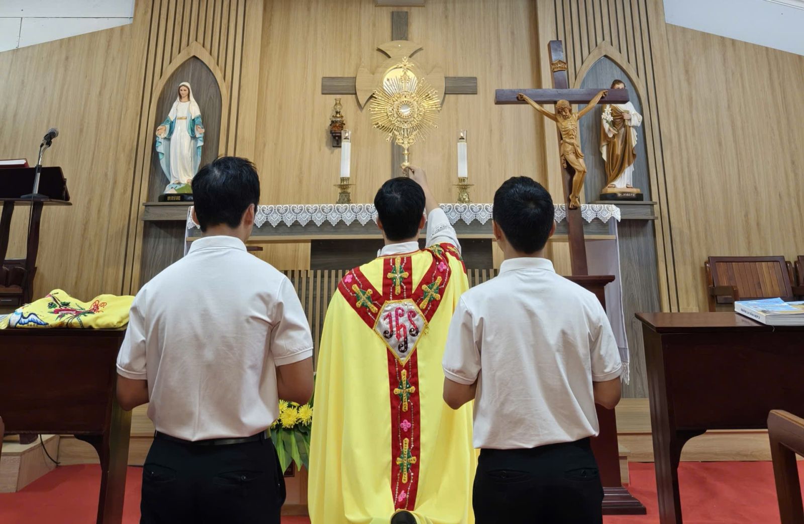 Sau đó cha Đặc trách đưa ra các câu hỏi gợi ý để anh em có thể nhìn nhận lại bản thân trong giờ Chầu Thánh Thể và Thánh Lễ:
