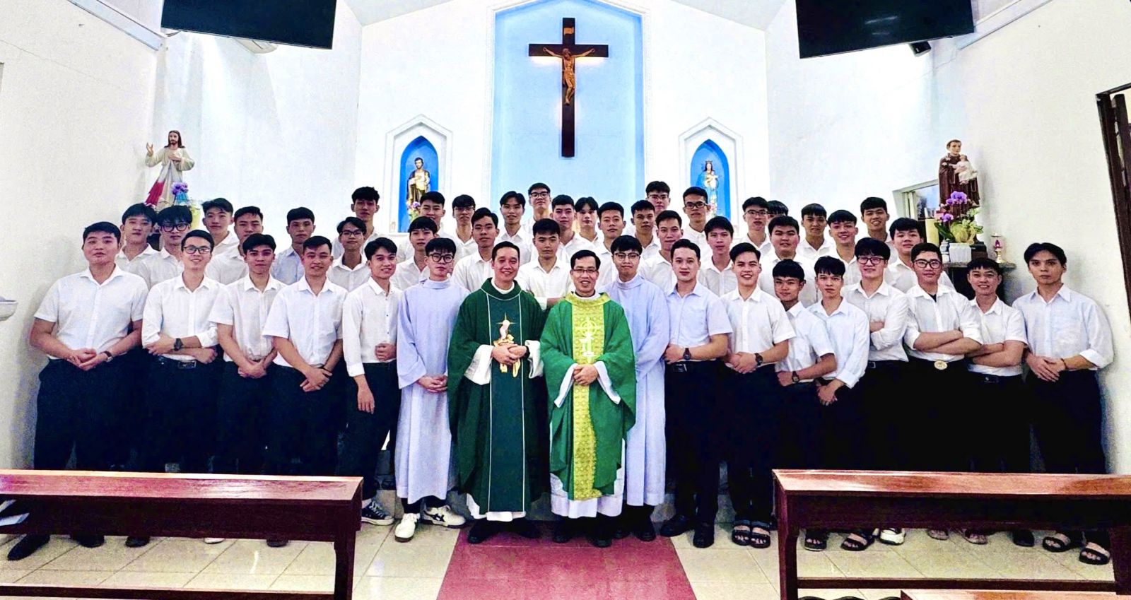 Vào lúc 8g00, như thường lệ, anh em dự tu quy tụ trong Nhà Thờ để tập hát và chuẩn bị tâm hồn cho buổi tĩnh tâm được sốt sắng.