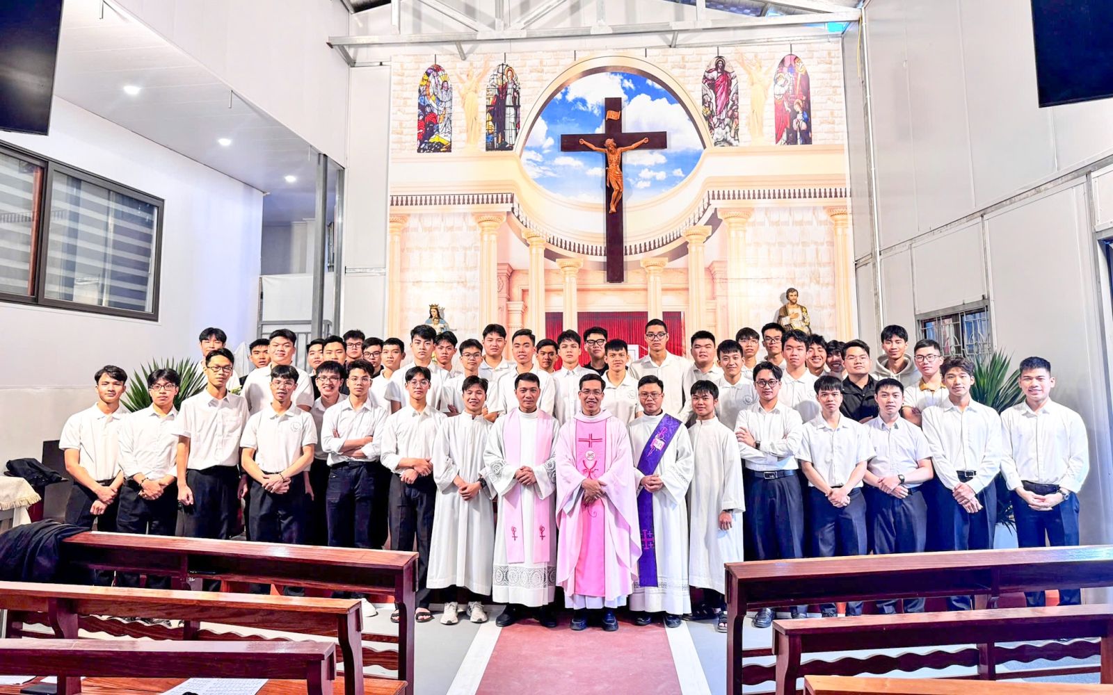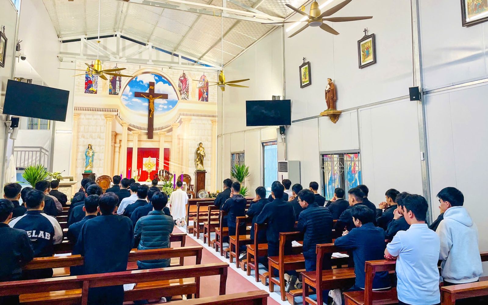 Đỉnh cao của buổi tĩnh tâm là Thánh lễ Chúa Nhật thứ IV Mùa Chay. Trong bài giảng, từ lời nhận xét của người biệt phái đối với Chúa Giêsu “Người đó không phải bởi Thiên Chúa, vì không giữ ngày Sa-bát” (Ga 9,16), thầy Phó tế Gioan Baotixita đã nhấn mạnh rằng chính cái nhìn con người, cái nhìn dân tộc cố thủ đã khiến những người biệt phái không thể nhận ra ánh sáng của Thiên Chúa. Với câu chuyện Thiên Chúa chọn Đavít là người được xức dầu phong vương (1Sm 16,1b.6-7.10-13a), thầy gợi nhắc cho anh em rằng: sự hiểu biết và tầm nhìn của Thiên Chúa vượt lên trên những ý hiểu, dự định của con người, Người không chỉ đánh giá con người qua bề ngoài nhưng còn qua nội tâm sâu thẳm bên trong. Từ đó, thầy mời gọi anh em hãy sống tâm tình Mùa Chay, không chỉ là thời gian ăn năn, sám hối nhưng mà còn là dịp để vượt qua những suy nghĩ, lối tư duy hạn hẹp cố hữu để có cái nhìn sâu sắc hơn về ý nghĩa của các biến cố xảy đến trong cuộc đời, từ đó làm mới lại tâm thức về lối sống, về vạn vật xung quanh và cách riêng là về chính bản thân mình.