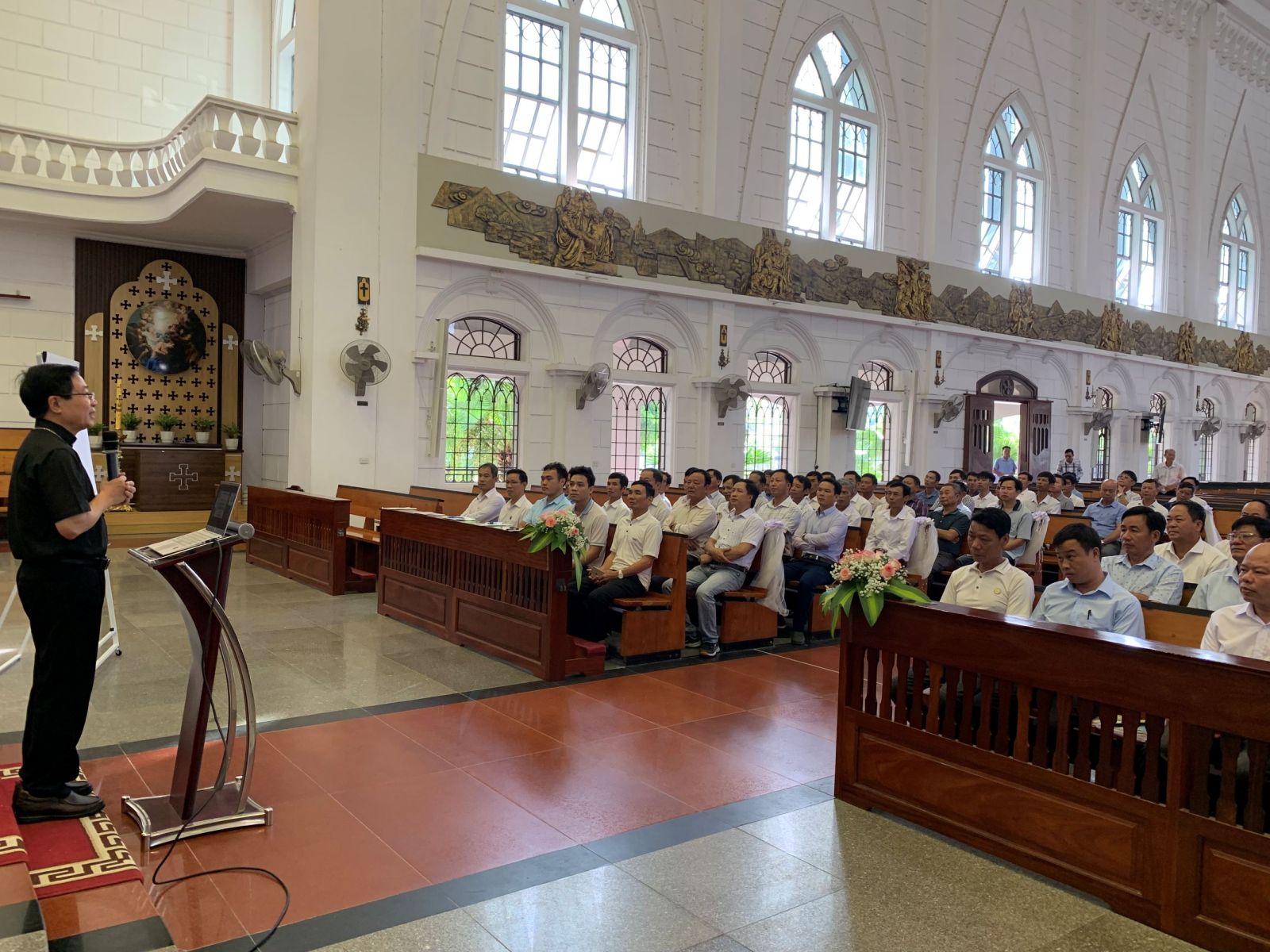 Sau giờ gặp gỡ vị chủ chăn của giáo phận, các viên chức tiếp tục các tiết học liên quan đến Phụng vụ, kỹ năng điều hành, giao tế… do cha Giu-se – Quản hạt Chính Tòa trực tiếp hướng dẫn.
