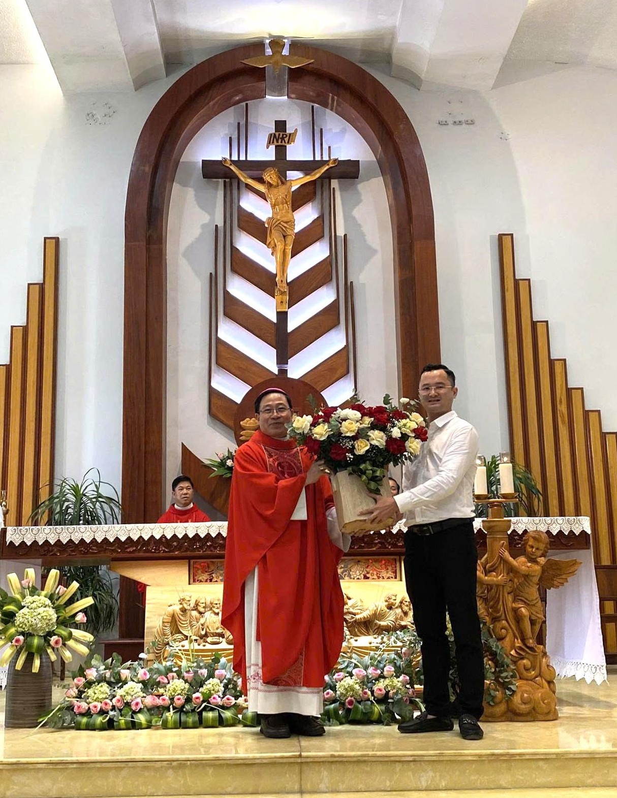 Trước khi kết thúc Thánh lễ, vị đại diện đã dâng lời tri ân Đức cha, cha linh hướng, quý cha và cộng đoàn. Sau đó, cộng đoàn trao tặng Đức cha Đa-minh bó hoa tươi thắm chúc mừng Đức cha với chức vụ ngài mới đón nhận - Chủ tịch Ủy ban Thánh Nhạc Giáo hội Việt Nam. Đức cha, quý cha và cộng đoàn cũng chúc mừng, trao tặng Gia đình Y khoa Công Giáo Thái Bình bó hoa tươi thắm trong ngày mừng kính Thánh Bổn Mạng.