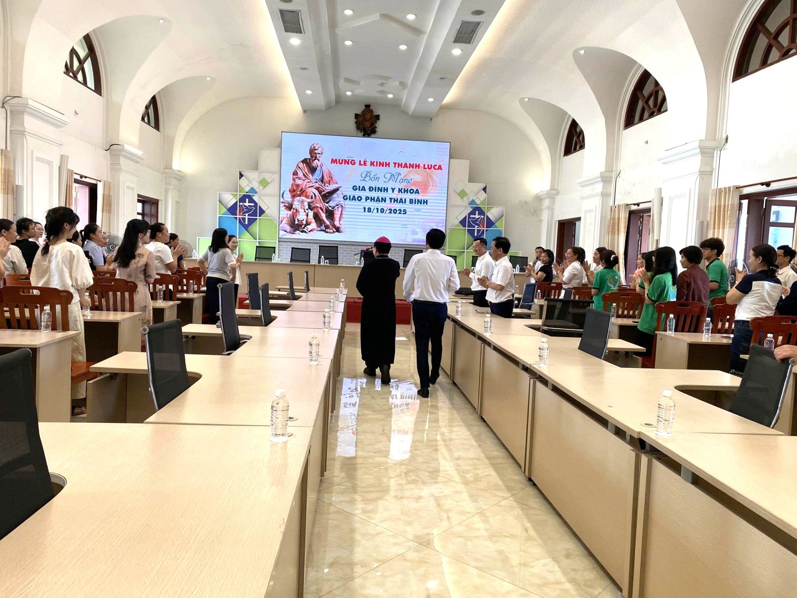 Hiện diện, đồng hành, chia sẻ, khích lệ và chung chia niềm vui cùng gia đình y khoa trong ngày mừng kính thánh Lu-ca – người thầy thuốc và chứng tá của Tin Mừng, có Đức cha Đa-minh Đặng Văn Cầu – vị cha chung của Giáo phận, cha Gio-an Chu Văn Yên - linh hướng, quý cha, quý dì, quý thầy, đại diện các bạn sinh viên trường Đại học Y dược Thái Bình. Đặc biệt là có khoảng 60 y bác sĩ, dược sĩ Công Giáo đang làm việc tại khu vực địa phận Thái Bình.