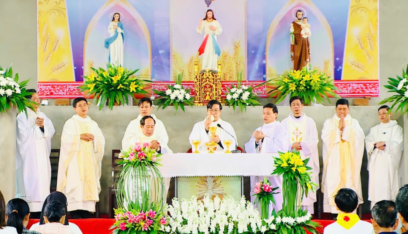 Vào lúc 09g00 Chúa Nhật, ngày 25/01/2025, đoàn rước đoàn đồng tế tiến vào thánh đường trong tiếng hát ca nhập lễ “Tôi sống nhưng không phải tôi sống mà là Đức ki-tô sống trong tôi”. Thánh lễ trọng thể do cha Quản hạt Giuse Bùi Đình Nguyện chủ tế. Cùng đồng tế với ngài có quý cha trong và ngoài giáo hạt, cùng sự hiện diện đông đảo của quý tu sĩ, quý chức HĐMV và cộng đoàn dân Chúa trong ngoài giáo họ.