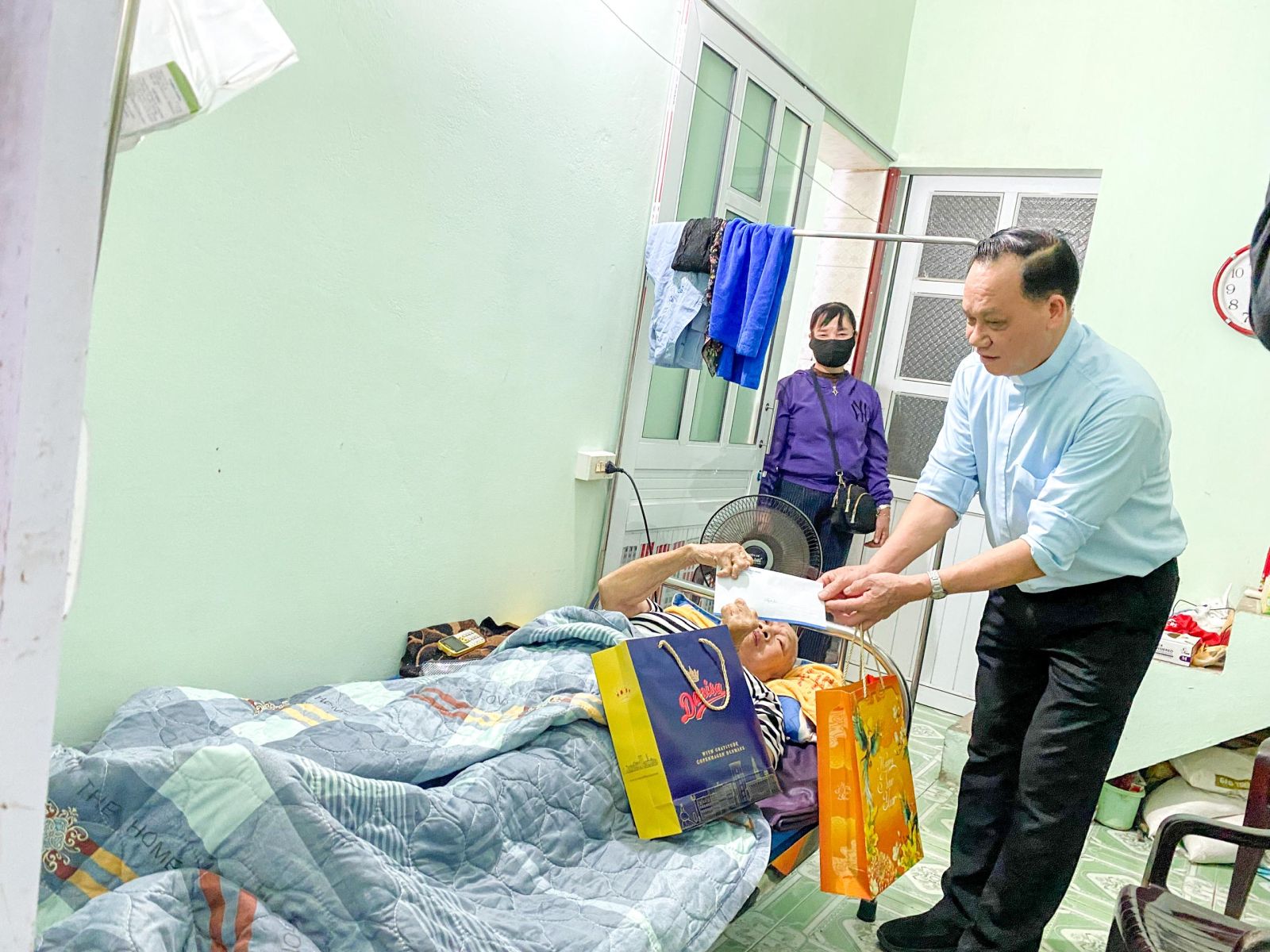 Sau đó, quý cha, quý thầy, quý dì và quý ân nhân tiếp tục đến thăm, chúc Tết và trao quà xuân cùng lì xì cho những bệnh nhân nặng không thể tham dự buổi họp mặt đầu xuân tại tư gia.