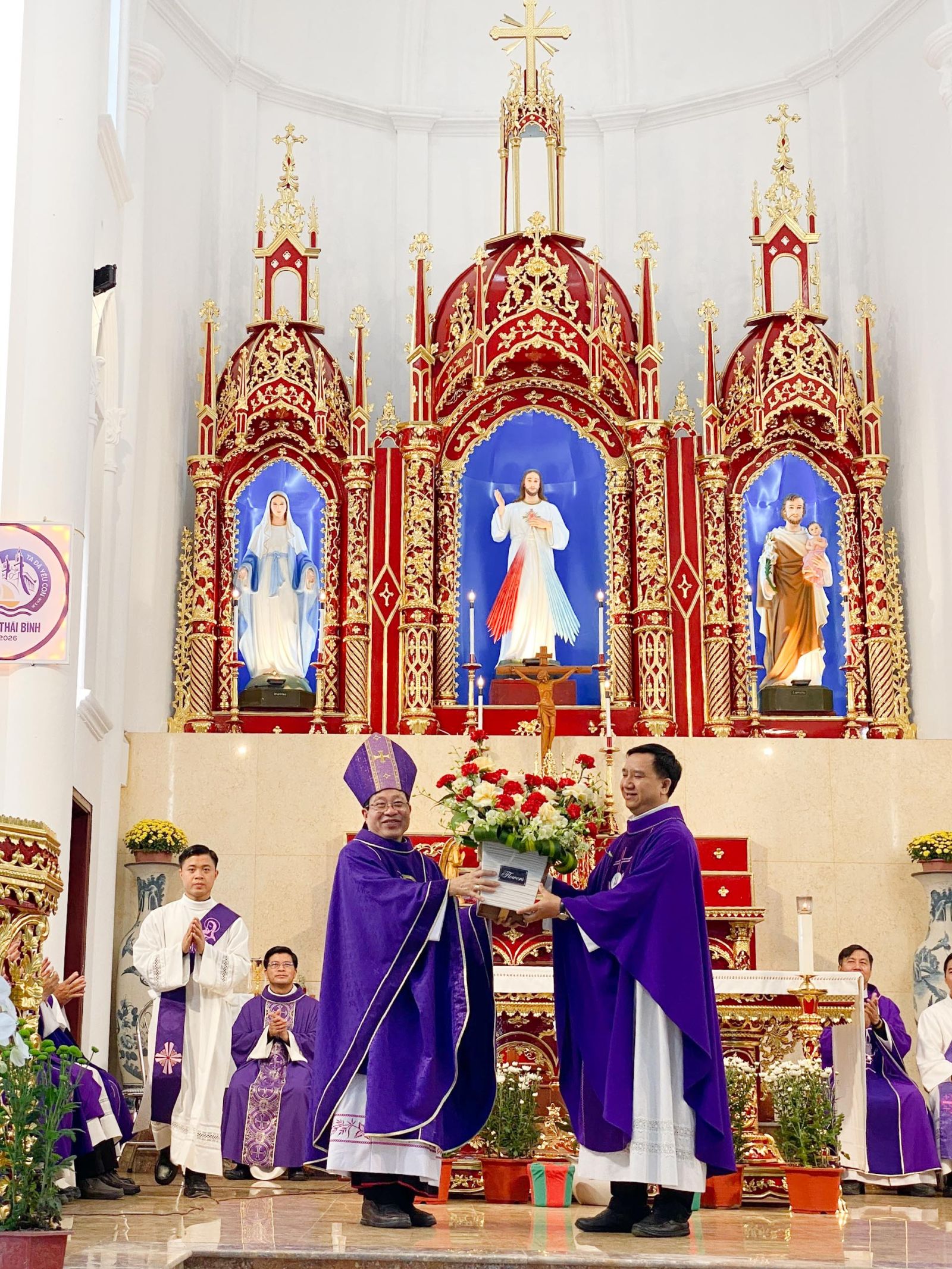 Tham dự ngày gặp mặt có Đức cha Đa minh Đặng Văn Cầu – Giám mục Chính tòa Giáo phận, quý cha, quý thầy phó tế, quý tu sĩ, quý thầy chủng sinh, quý ân nhân – những người yêu mến bệnh nhân phong. Hiện diện trong niềm vui chung có một số bệnh nhân phong đang được nuôi dưỡng, chăm sóc tại tòa nhà mục vụ của Giáo họ Đông Thọ kể từ khi Nhà nước giải thể trại phong Văn Môn vào tháng 6/2025, cùng các bệnh nhân phong đang sống tại các gia đình từ nhiều nơi trong Giáo phận quy tụ về và đông đảo cộng đoàn dân Chúa Giáo xứ Thái Sa. Hiện tại, Giáo phận Thái Bình đang tiến hành xây dựng một tòa nhà mới – mái ấm dành cho các bệnh nhân phong – với ước mong tạo nên một không gian sinh sống ổn định, an toàn và chan chứa tình thương, giúp các bệnh nhân có nơi nương tựa lâu dài.