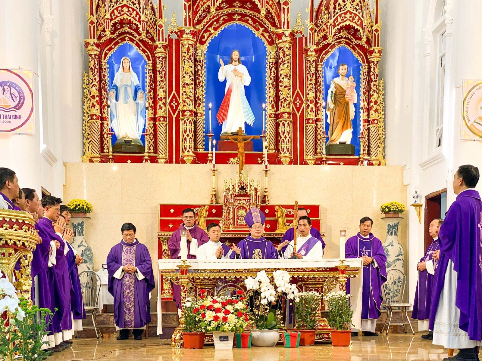 Đúng 09g00, Thánh lễ tạ ơn được cử hành trong bầu khí trang nghiêm và ấm áp tình gia đình. Trong phần lời ngỏ đầu lễ và bài giảng, Đức cha Giáo phận đã tha thiết mời gọi cộng đoàn mặc lấy tâm tình của Đức Kitô. Ngài nhấn mạnh rằng các bệnh nhân phong chính là những chi thể đau khổ của Đức Kitô hôm nay; vì thế, đón nhận, yêu thương và đồng hành với họ không chỉ là một nghĩa cử nhân ái, mà là để sống mầu nhiệm hiệp thông trong Hội Thánh cách cụ thể.
