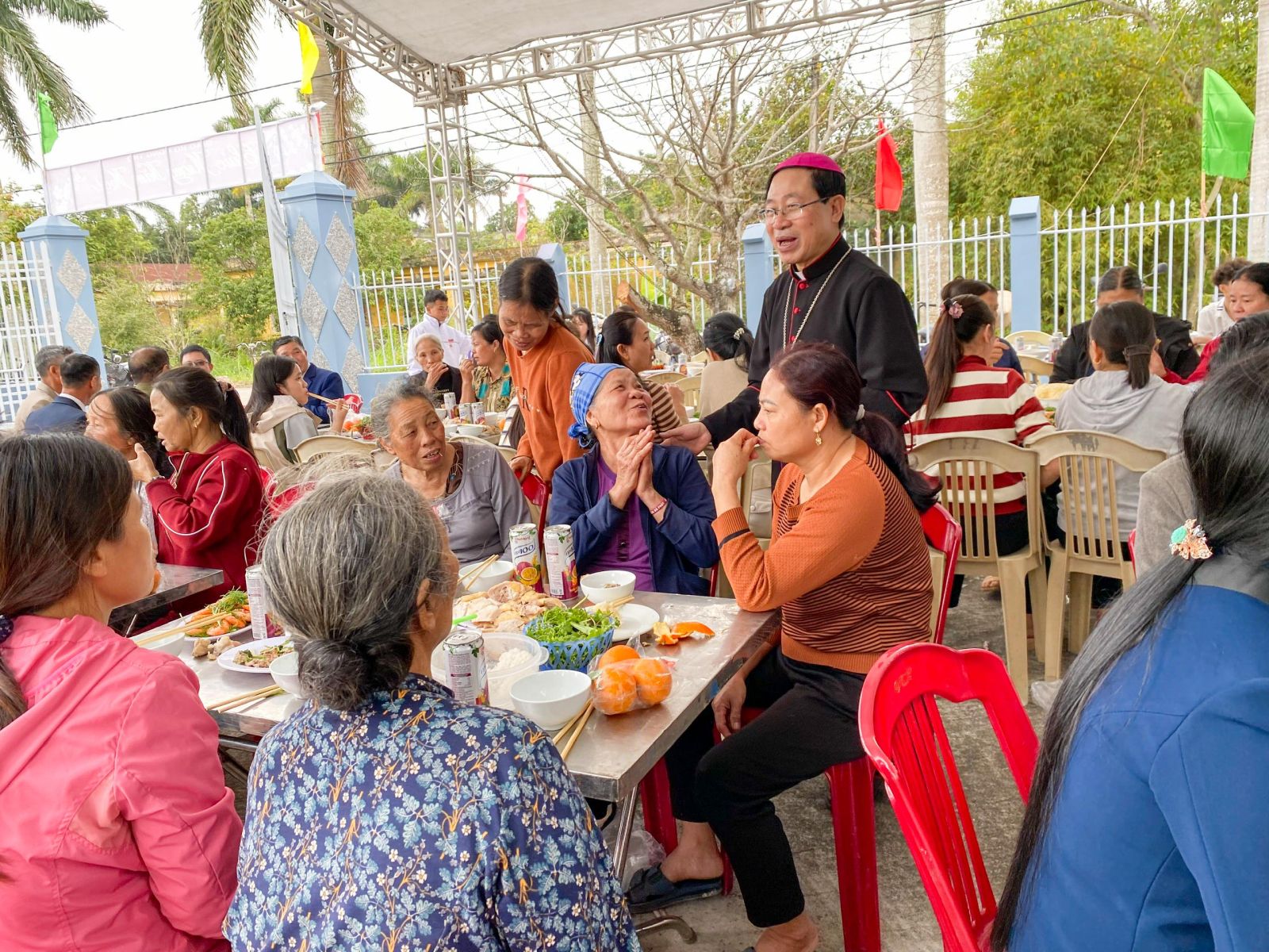 Sau Thánh lễ, mọi người cùng các bệnh nhân hiệp thông trong bữa cơm huynh đệ ấm áp, quây quần bên nhau như một gia đình và sẻ chia niềm vui ngày Tết. Các bệnh nhân được Đức cha trao quà xuân và lì xì yêu thương. Những nụ cười rạng rỡ, những ánh mắt xúc động đã làm nên một mùa xuân thật ấm áp – mùa xuân của tình người và của hy vọng.