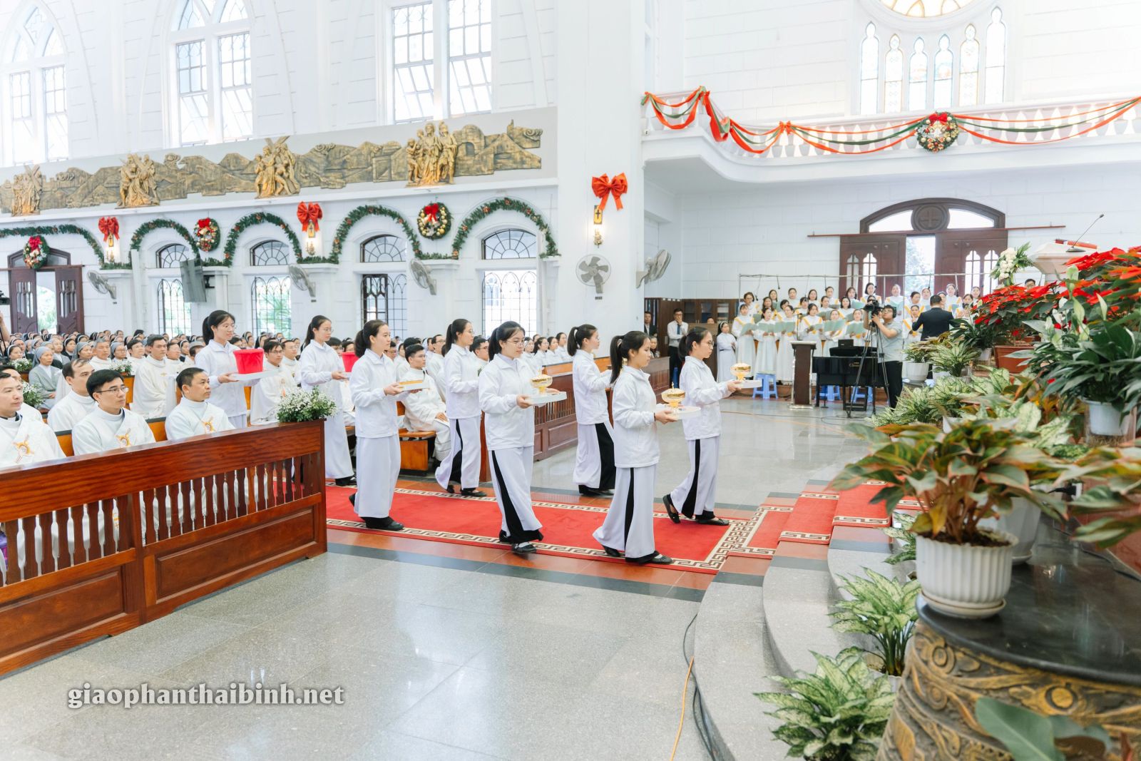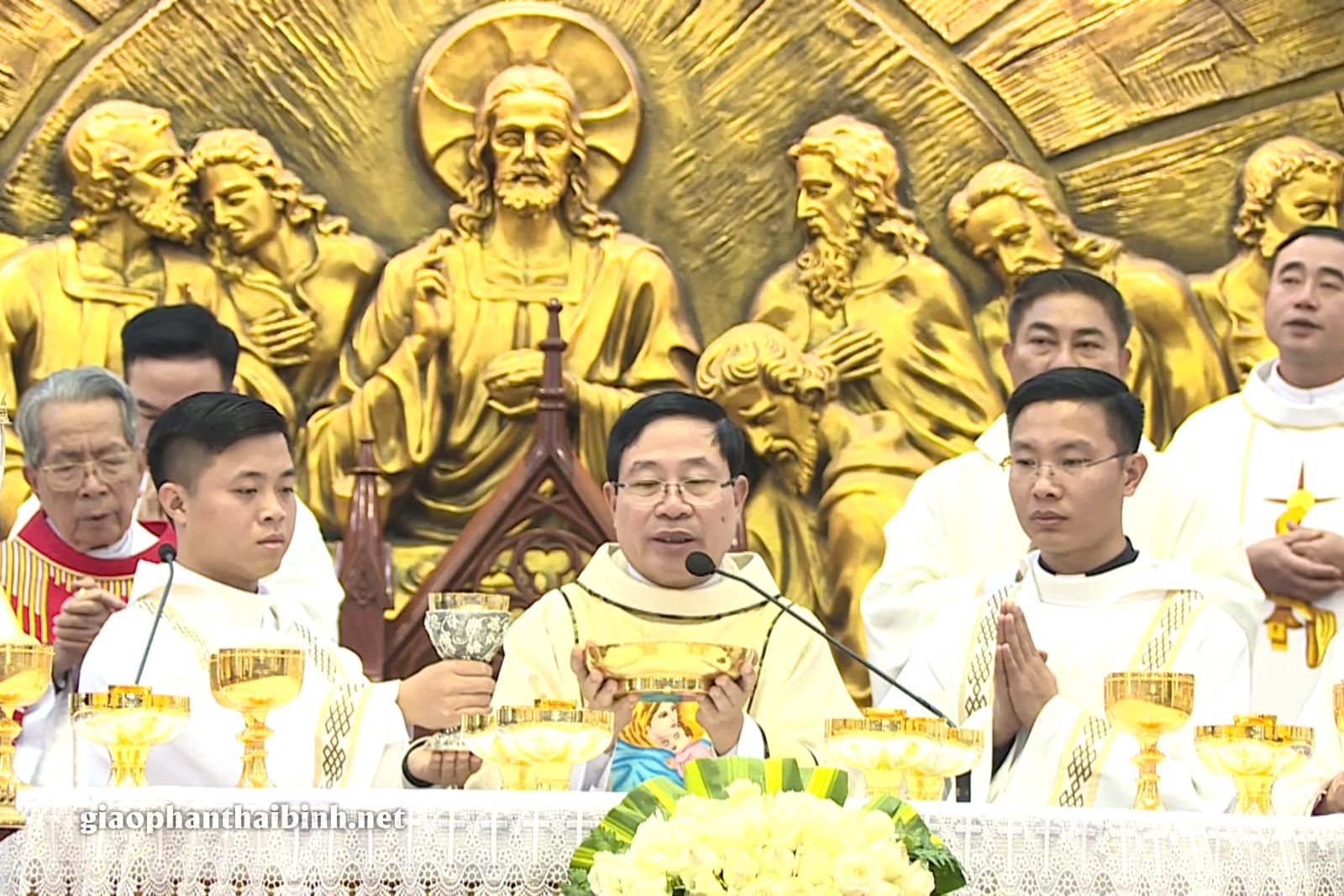 Thánh lễ được cử hành thật linh thiêng và sốt sắng với sự chủ tế của Đức cha Đa-minh. Cùng hiệp thông trong Thánh lễ có Đức cha Phê-rô – Nguyên Giám mục Giáo phận, quý cha, quý thầy phó tế, quý tu sĩ, chủng sinh và rất đông cộng đoàn dân Chúa.