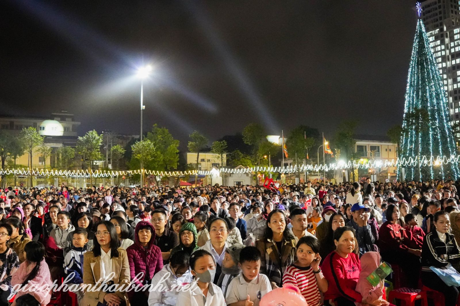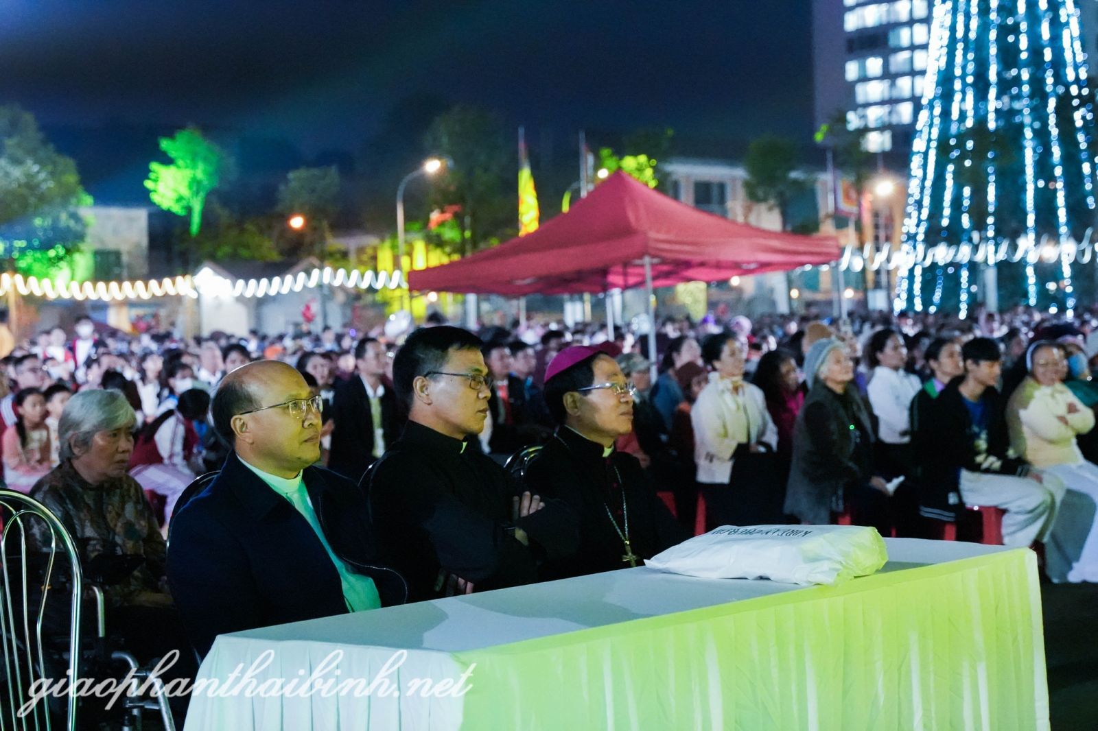 Trong những ngày qua, TGM. Thái Bình và Giáo xứ Chính Toà đã được đón nhiều đoàn đại biểu chính quyền các cấp và quý khách đến thăm và chúc mừng nhân dịp Đại lễ Thiên Chúa Giáng Sinh. Không khí càng nhộn nhịp tấp nập hơn từ chiều 24/12. Hàng chục nghìn người nườm nượp đổ về quảng trường TGM và khuôn viên Nhà Thờ Chính Toà, hoà mình vào không khí Đêm Giáng Sinh.