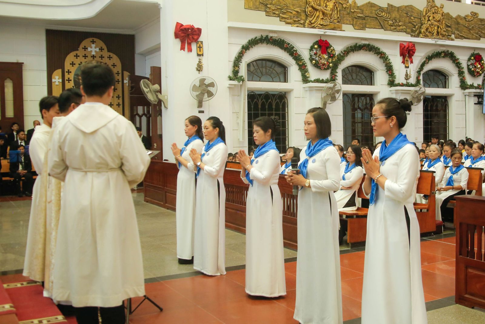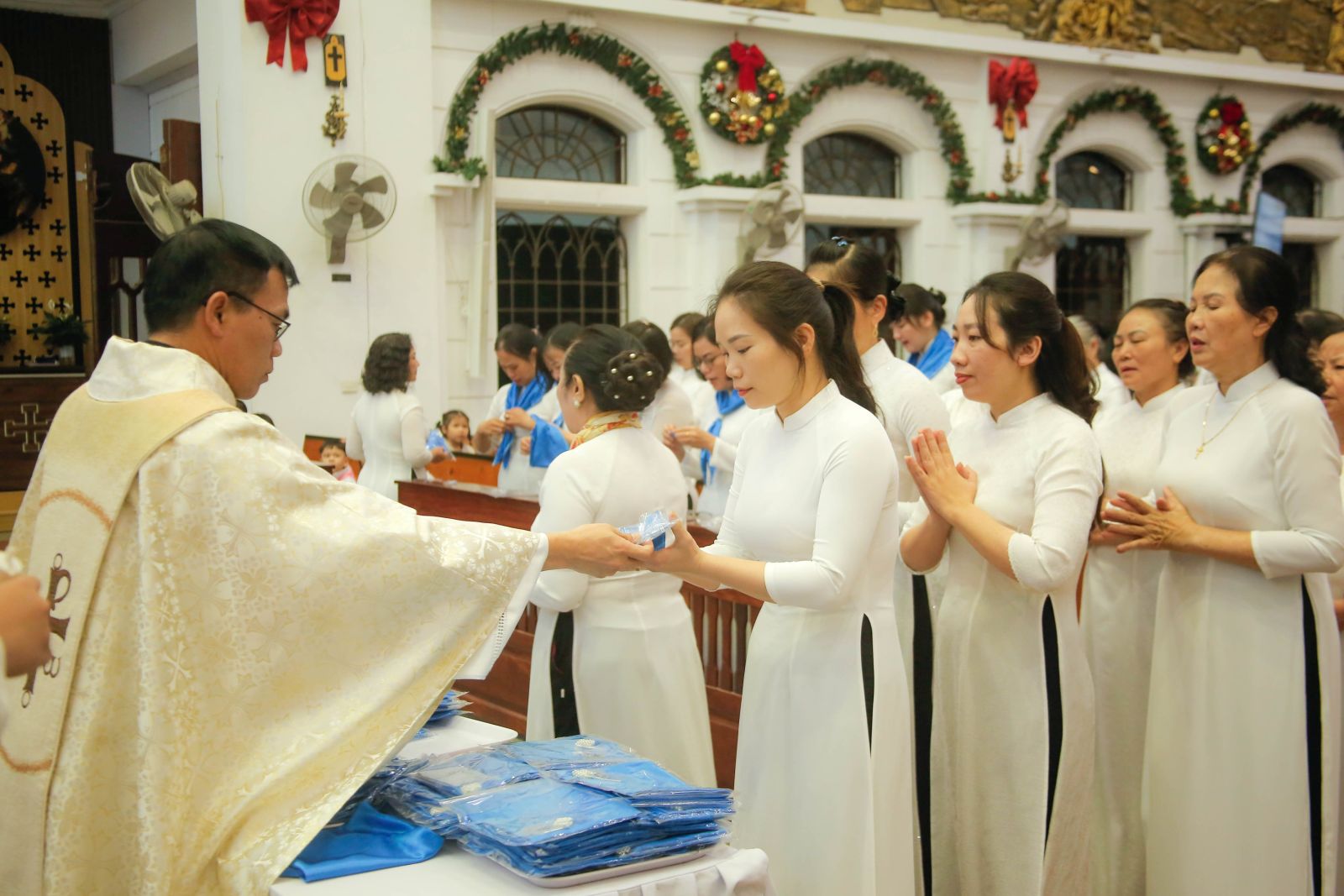 Sau bài chia sẻ Lời Chúa, cha Chánh xứ Giu-se tiến hành nghi thức thẩm định và nhận lời tuyên hứa của các ứng viên gia nhập Hội Hiền Mẫu. Các hội viên được nhận khăn và huy hiệu - biểu trưng của Hội. Ban Điều hành Hội cũng chính thức ra mắt với lời tuyên thệ sốt sắng.