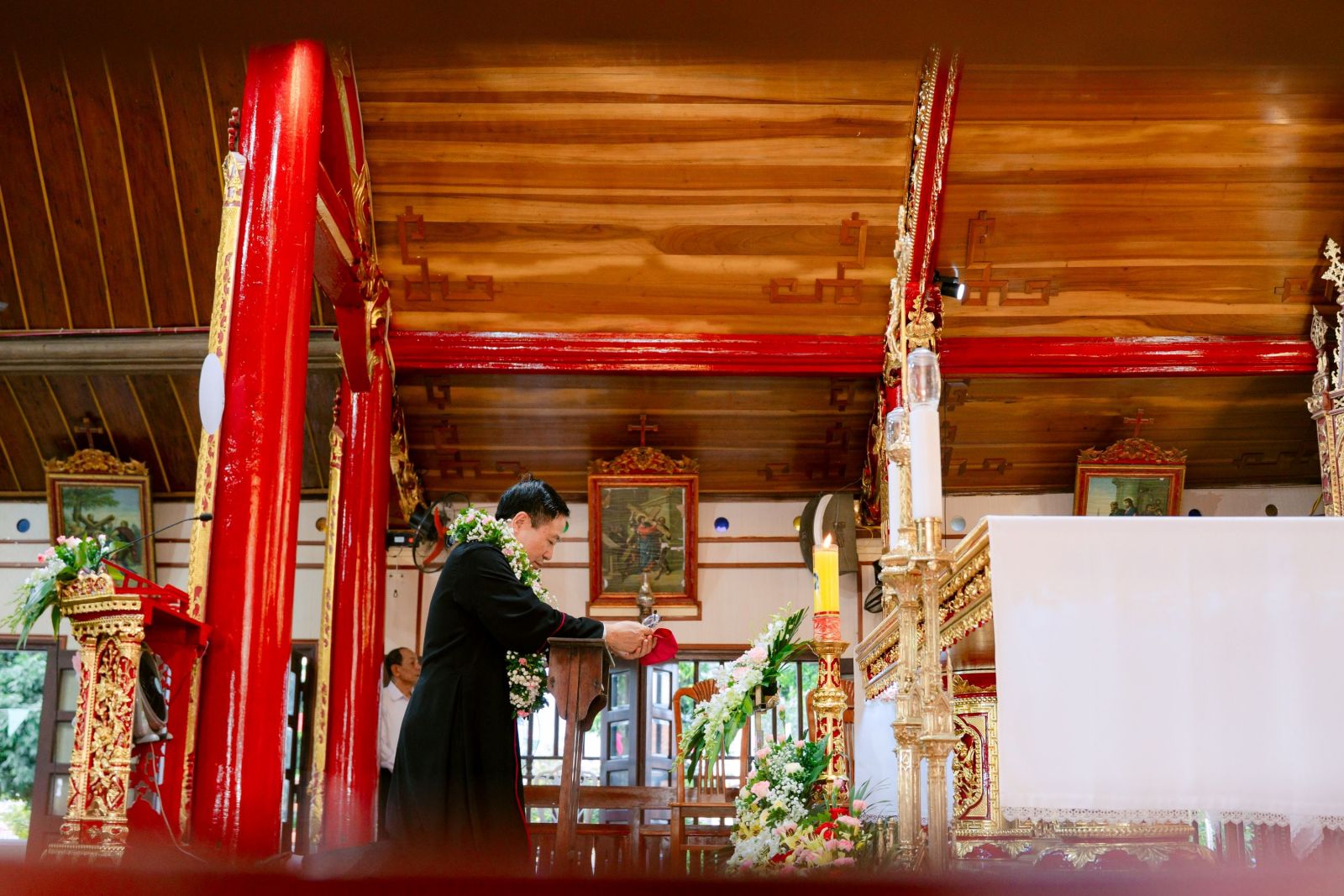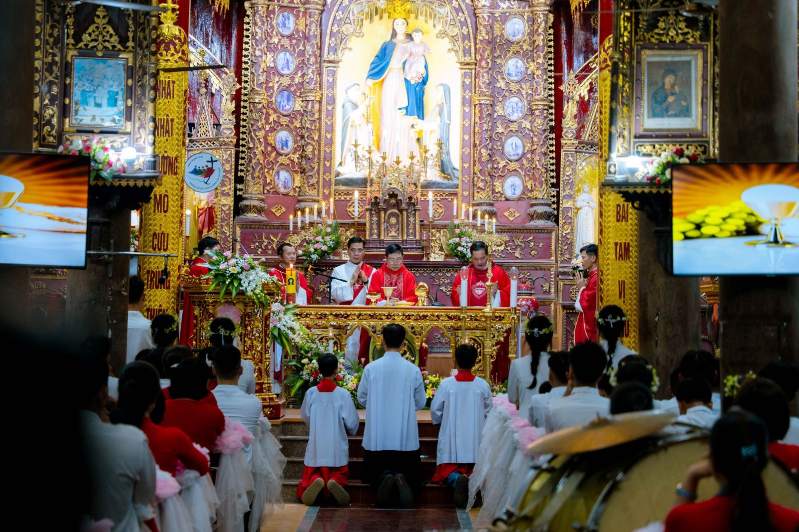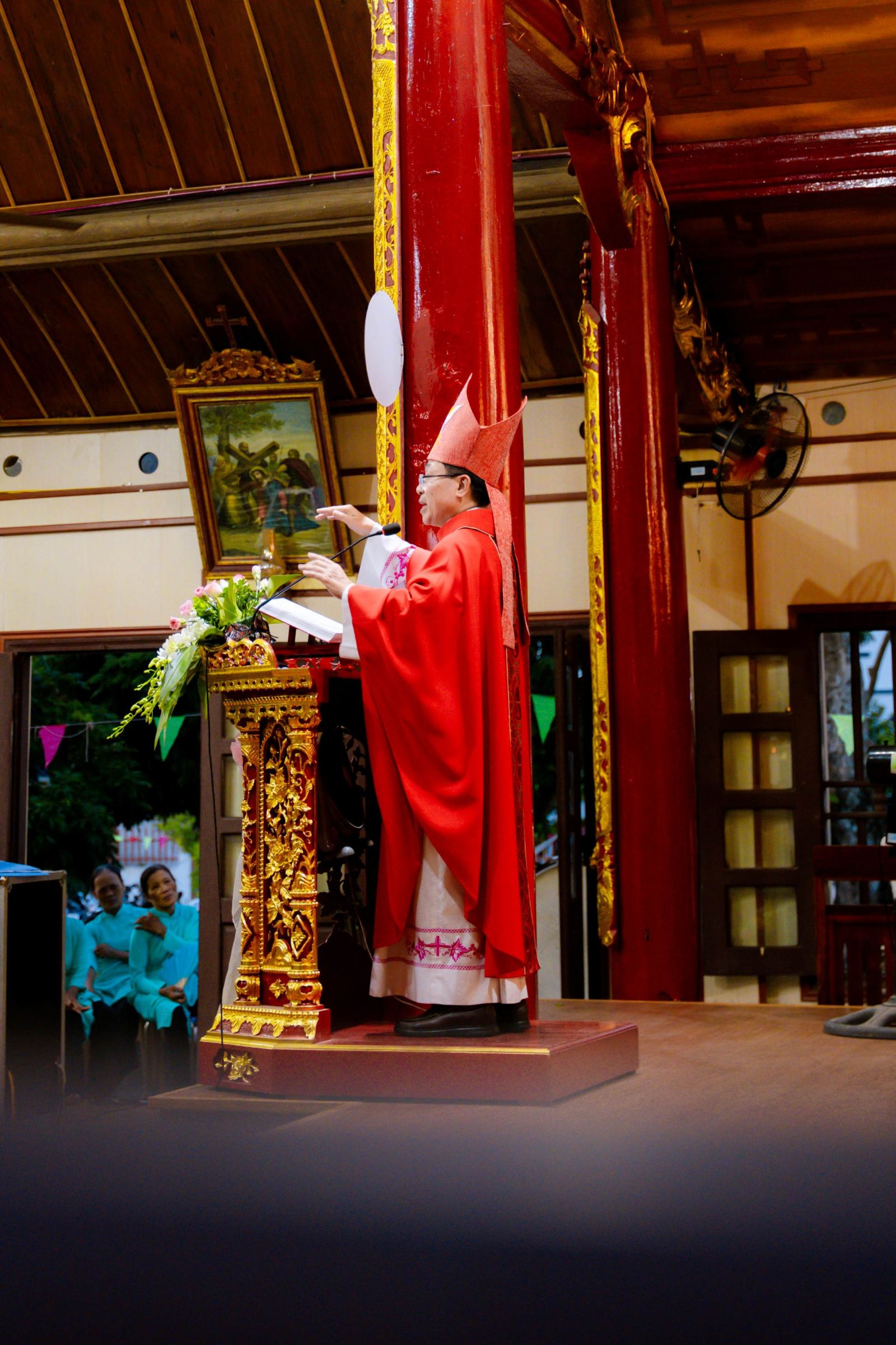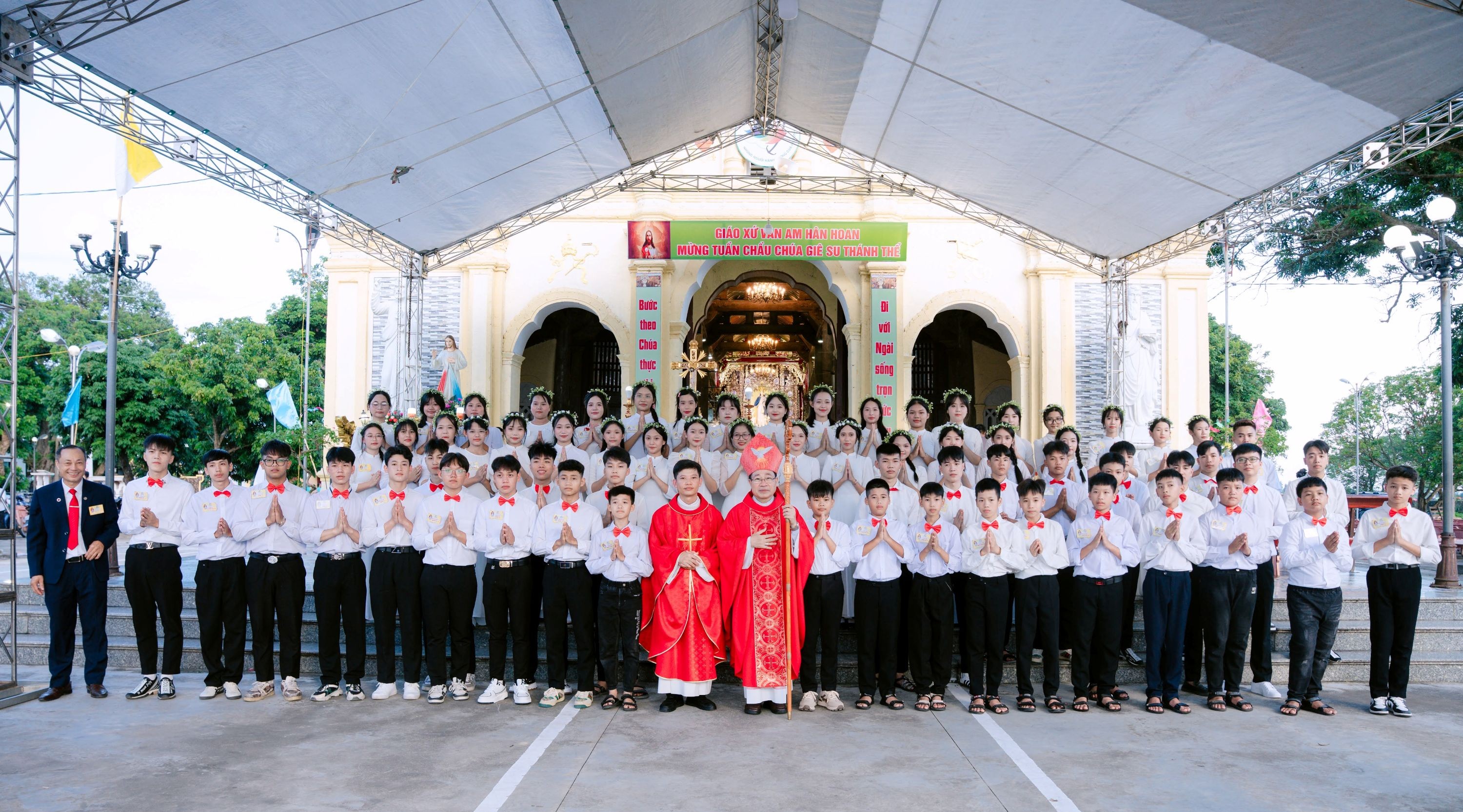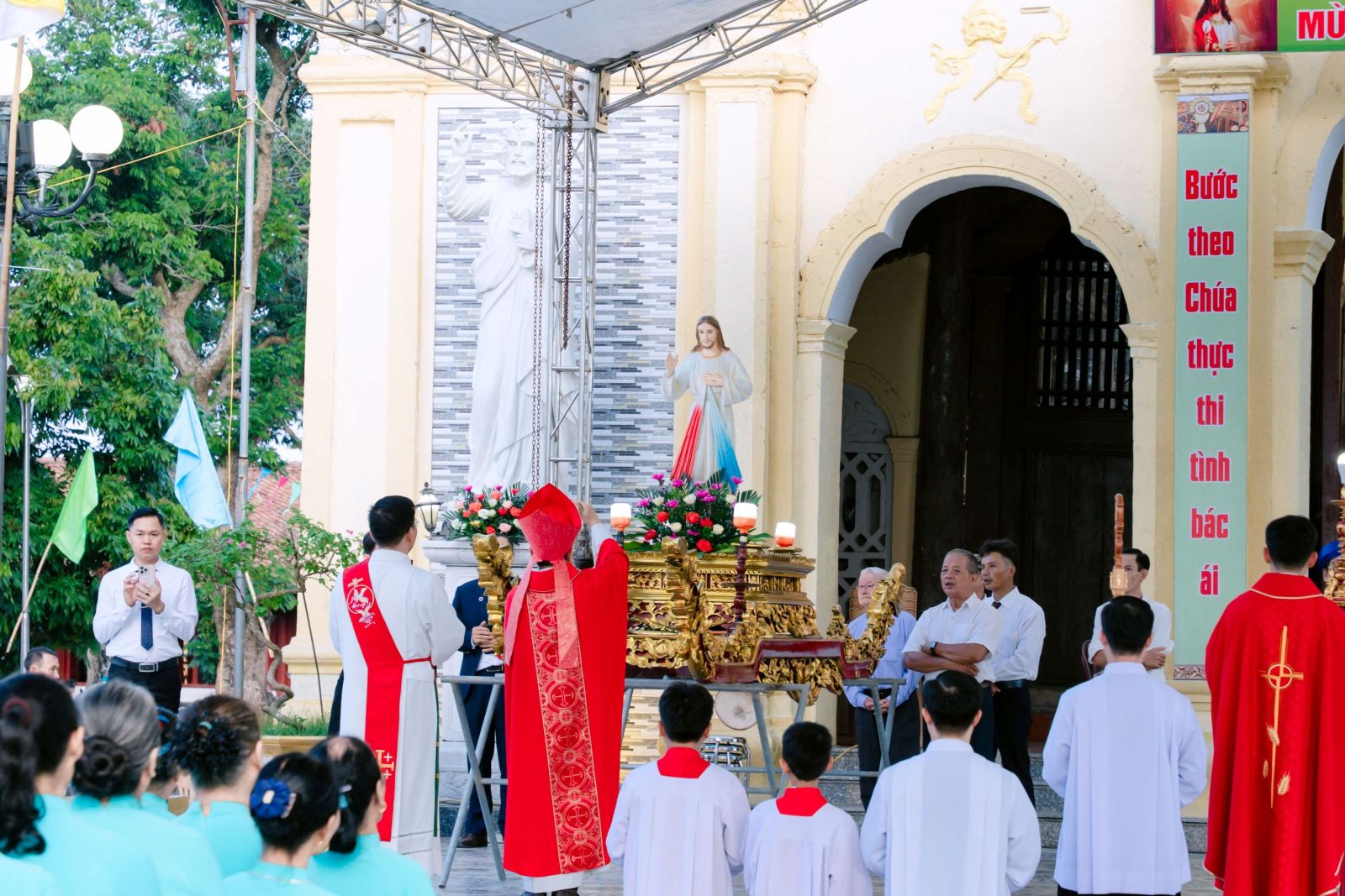Sau nghi thức cung nghinh kiệu Lòng Chúa Thương Xót xung quanh Thánh đường, Thánh lễ ban Bí tích Thêm Sức, khai mạc Tuần Chầu lượt Giáo xứ Vân Am được cử hành.