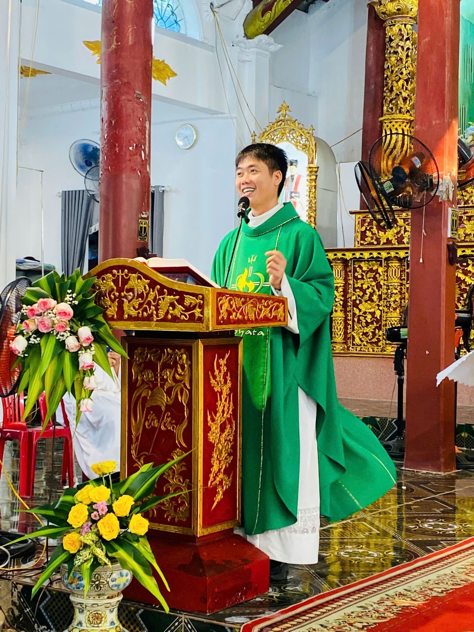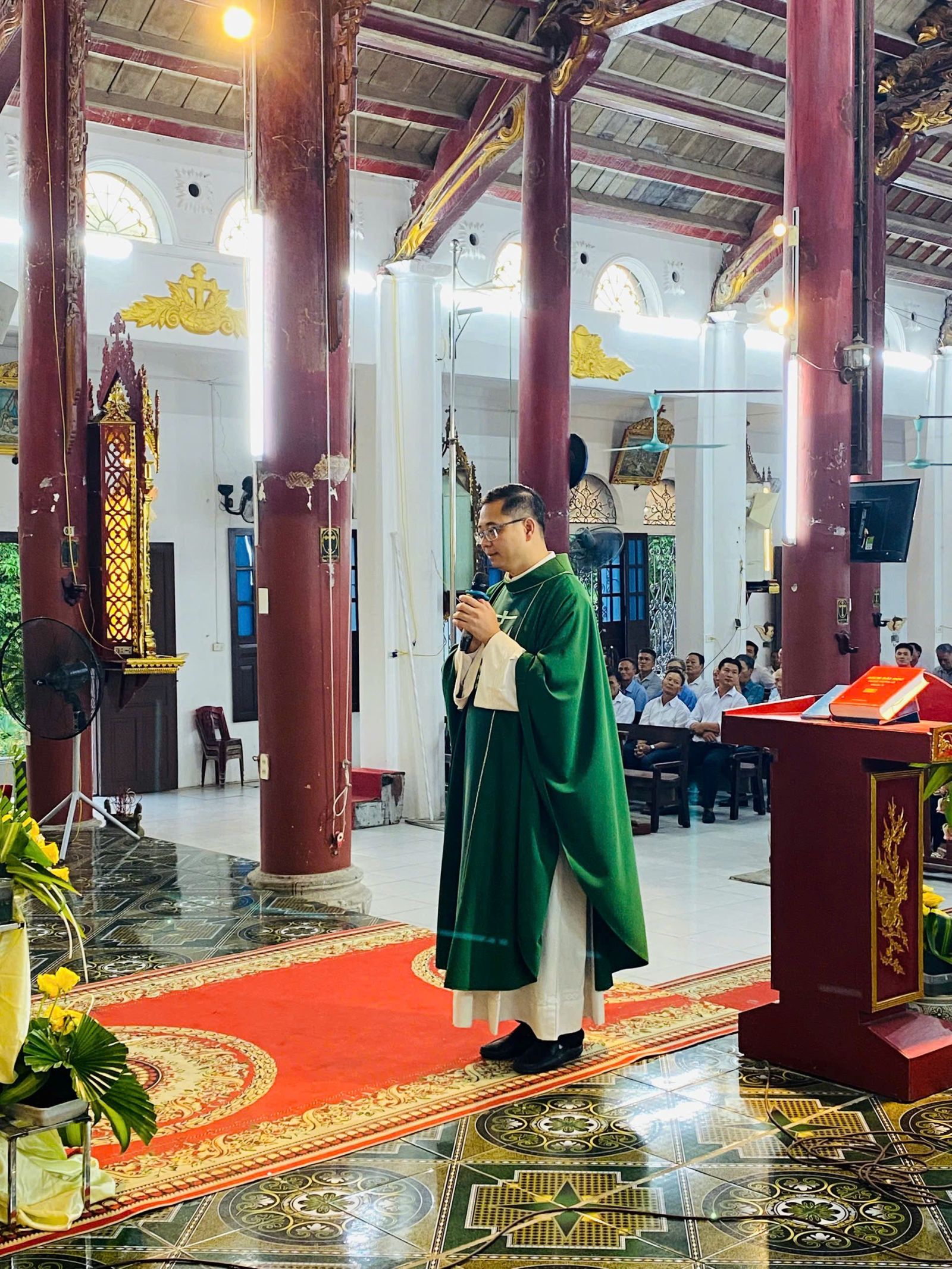 Trong lời mở đầu Thánh lễ, cha chủ tế bày tỏ niềm vui khi cộng đoàn Giáo xứ Võng Phan được hành hương về Nhà thờ Cao Xá, và cầu chúc mọi người kín múc thật nhiều hồng ân trong dịp đặc biệt này.