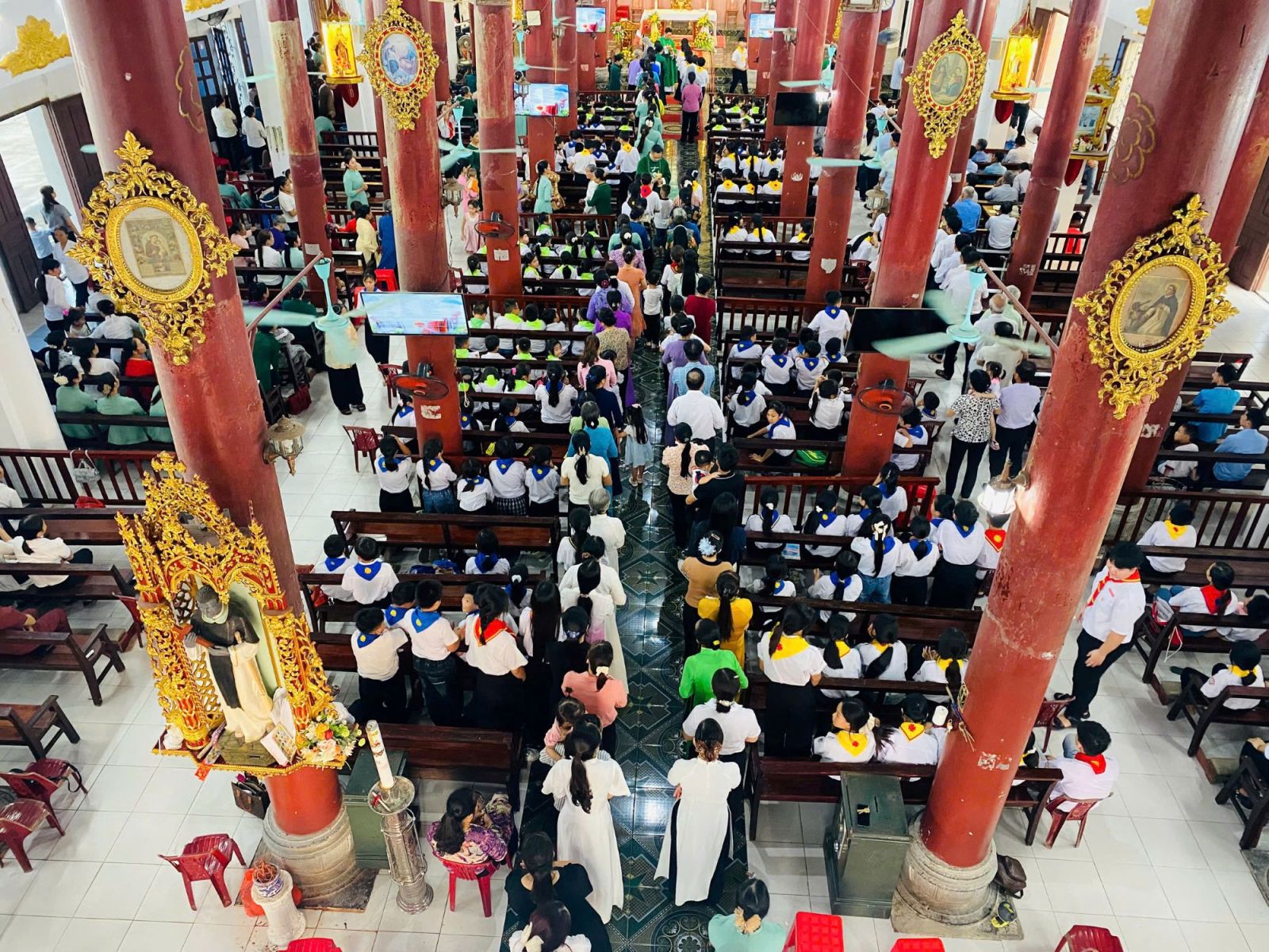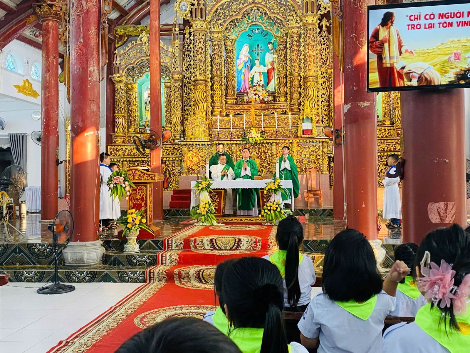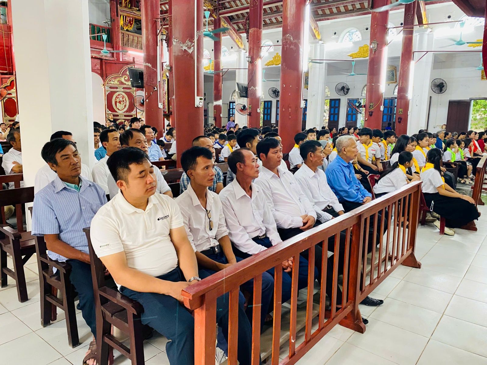 Cùng thời điểm đó, trong thánh đường, các cha ngồi toà giải tội cho những ai mong được giao hòa với Thiên Chúa, để tâm hồn trong sạch đón nhận hồng ân. Khi đoàn rước tiến vào nhà thờ, khung cảnh thật trang nghiêm và sống động.
