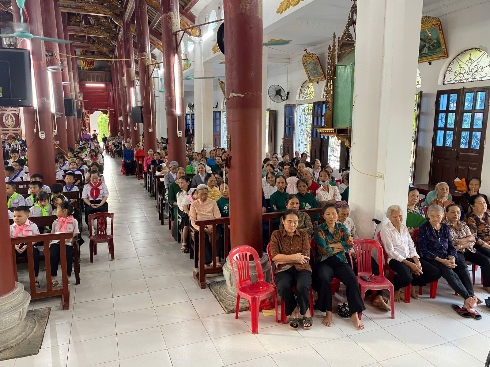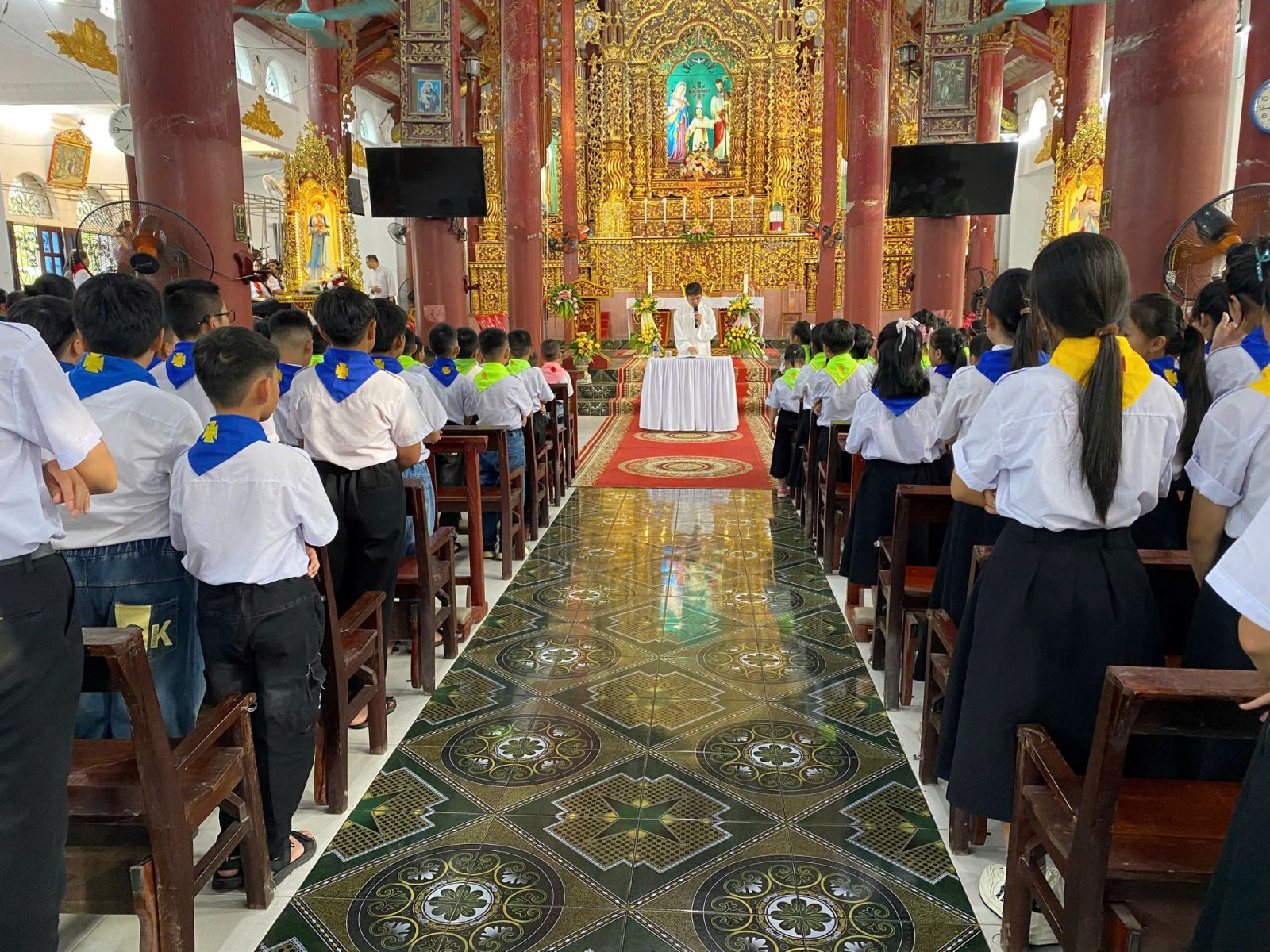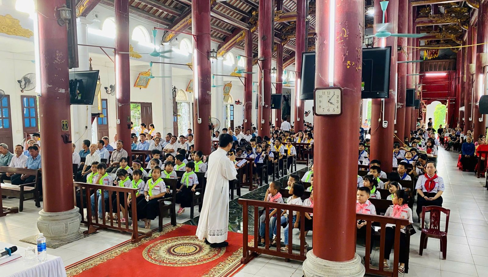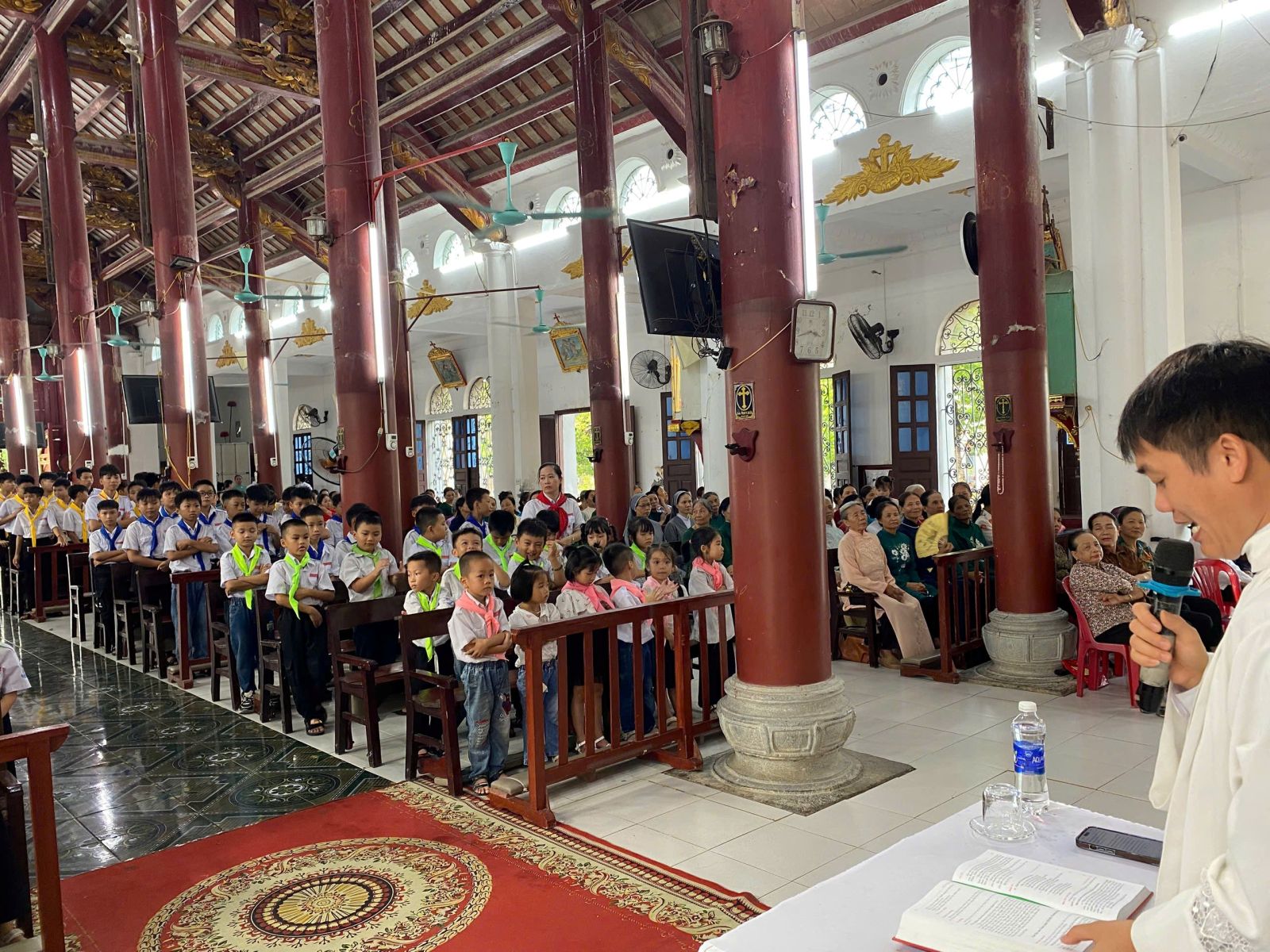 Cùng thời điểm đó, trong thánh đường, các cha ngồi toà giải tội cho những ai mong được giao hòa với Thiên Chúa, để tâm hồn trong sạch đón nhận hồng ân. Khi đoàn rước tiến vào nhà thờ, khung cảnh thật trang nghiêm và sống động.