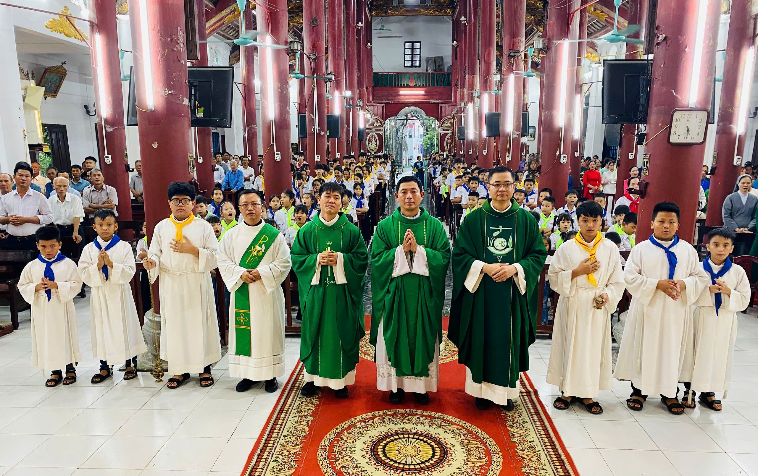 Sau phần chia sẻ, cộng đoàn sốt sắng bước vào Thánh lễ tạ ơn dưới sự chủ tế của cha Giu-se Nguyễn Văn Hữu, CSsR. Đồng tế trong Thánh lễ có cha Vinh-sơn Nguyễn Quốc Hoàn - Chánh xứ Võng Phan và cha Vinh-sơn – Quản nhiệm xứ Tần Nhẫn; và sự hiệp thông của thầy Phó tế Giu-se, quý dì và đông đảo cộng đoàn dân Chúa.