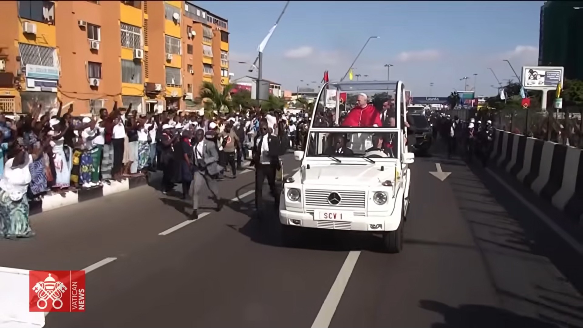 Tại chân thang máy bay, Tổng thống João Manuel Gonçalves Lourenço đã đón tiếp Đức Thánh Cha, trong khi hai thiếu nhi trong trang phục truyền thống tặng hoa cho ngài. Sau nghi thức chào đón, Đức Thánh Cha di chuyển bằng xe papamobile đến Dinh Tổng thống để thăm hữu nghị.
