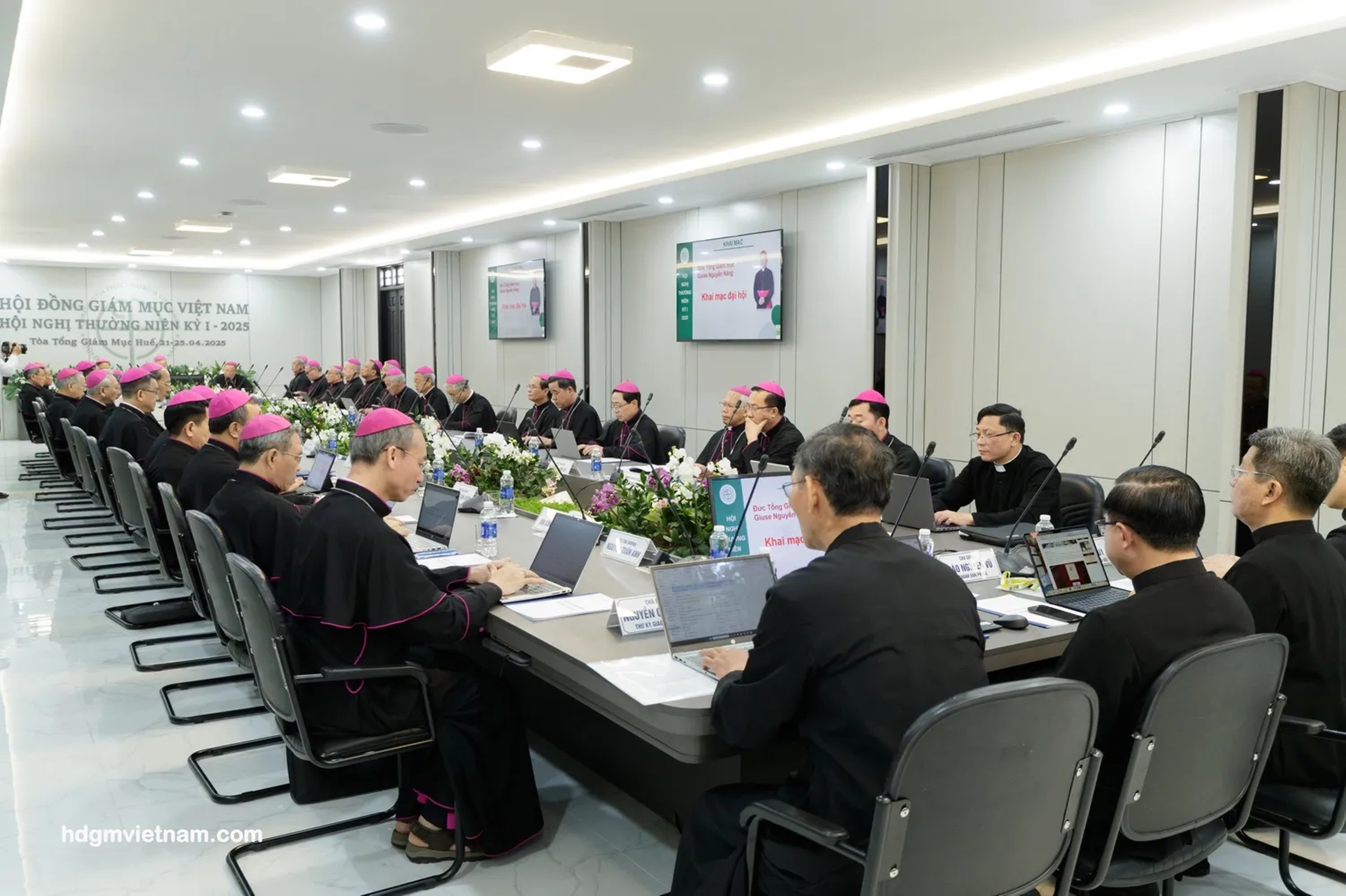Mở đầu phiên họp thứ nhất lúc 8 giờ, Hội nghị đã lắng nghe Đức Tổng Giám mục Giuse Nguyễn Năng, Chủ tịch HĐGM chia sẻ một số thông tin về quản trị và mục vụ; Đức Cha Giuse Đỗ Mạnh Hùng, Tổng Thư ký đã sơ lược chương trình và nội dung của Hội nghị lần này. Hội nghị đã dành thời lượng lớn của 4 phiên họp trong ngày làm việc đầu tiên để tiếp thu các nội dung từ “Tài liệu chung kết của Đại hội thường lệ lần thứ XVI Thượng Hội đồng Giám mục” và nghe phúc trình của hai Đức Cha tham dự tiến trình SYNOD: Đức Cha Giuse Đỗ Mạnh Hùng và Đức Cha Luy Nguyễn Anh Tuấn. Hội nghị cũng bàn thảo một số hướng dẫn và các đề nghị thực hành hậu-SYNOD của Liên Hội đồng Giám mục châu Á (FABC) dành cho Giáo hội địa phương. Đức cha Emmanuel Nguyễn Hồng Sơn cũng trình bày và giải thích về sắc lệnh liên quan đến các ý chỉ Thánh lễ do Bộ Giáo sĩ đệ trình Đức Thánh Cha Phanxicô “chuẩn y sắc lệnh này theo cách đặc biệt” và đã công bố vào Chúa nhật Lễ Lá ngày 13 tháng 4 vừa qua.