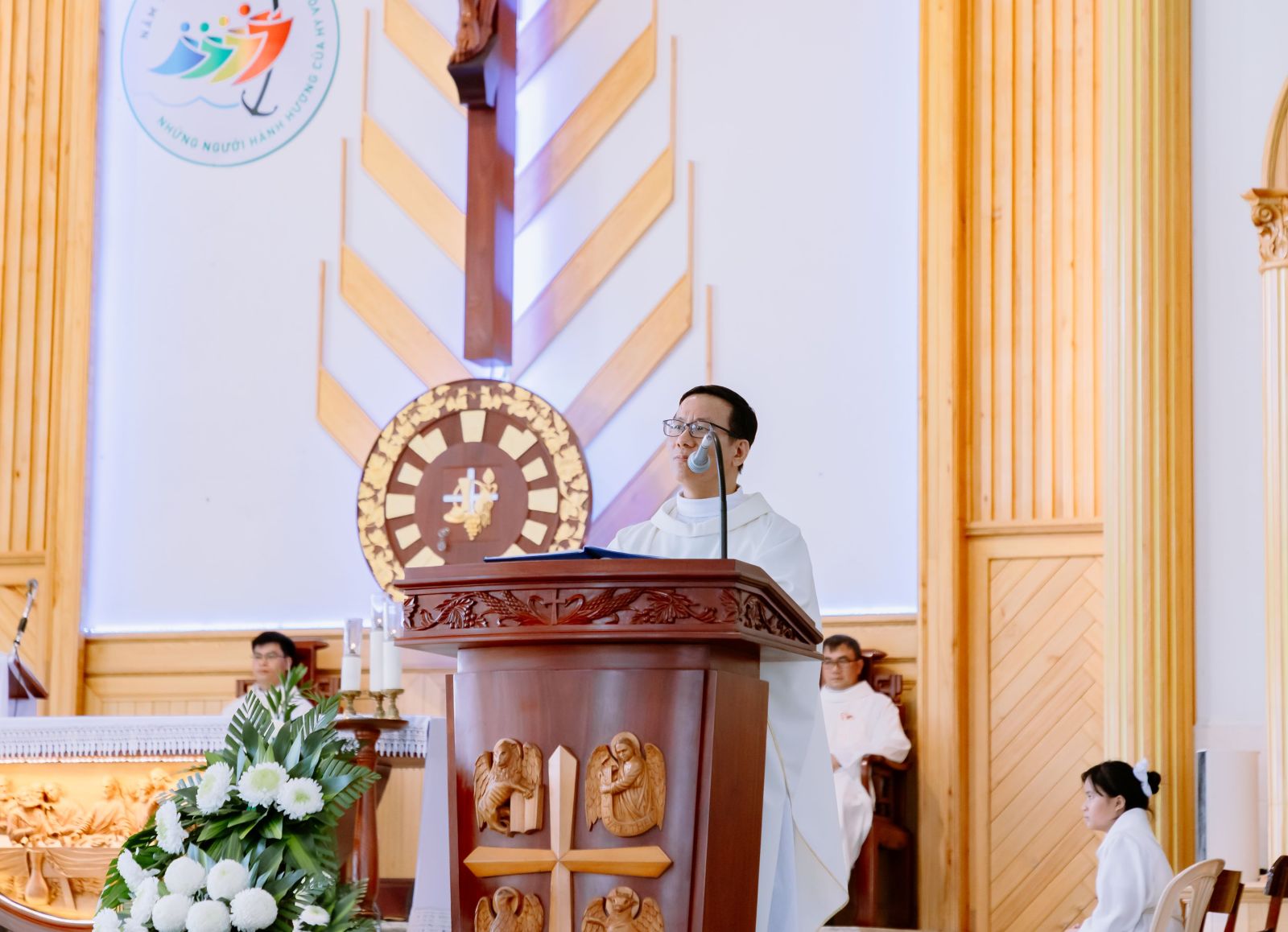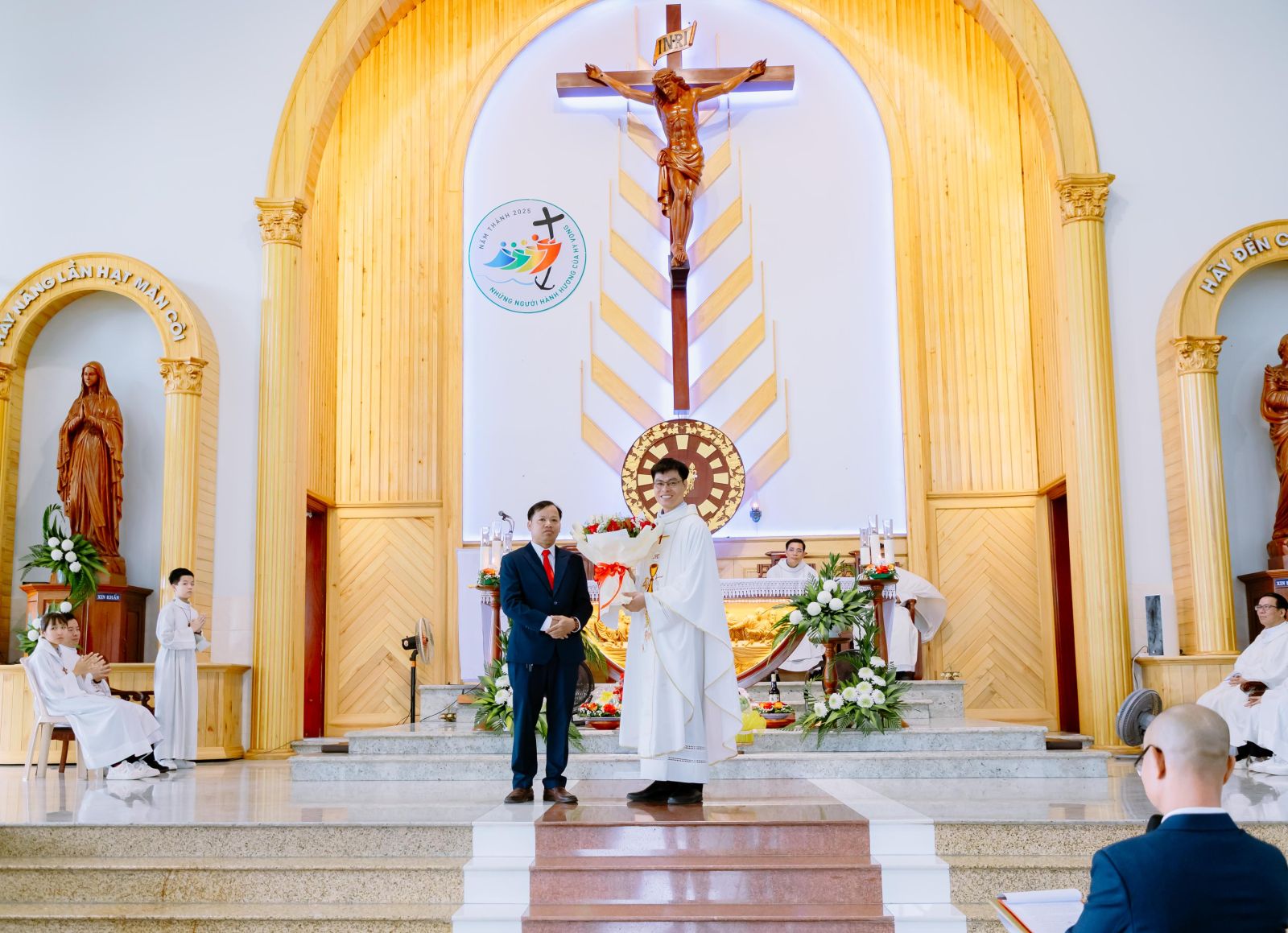 Cha cũng bày tỏ niềm tự hào về quê hương Cao Mại – nôi có truyền thống đạo đức lâu đời, trổ sinh ra nhiều ơn gọi dâng hiến cho Giáo hội, cách riêng, chỉ trong năm 2025, Giáo xứ có hoa trái ơn gọi là 3 linh mục, 1 phó tế, 3 nữ tu khấn trọn đời, 2 nữ tu khấn lần đầu. Đây là hồng ân lớn lao mà Thiên Chúa đã ban cho Giáo xứ quê hương. Cha Phanxico Xavie tiếp tục mời gọi cộng đoàn thêm lời cầu nguyện để trong tương lai sẽ có thêm nhiều bạn trẻ trong Giáo xứ Đền Thánh Cao Mại dấn thân theo Chúa trong ơn gọi dâng hiến.