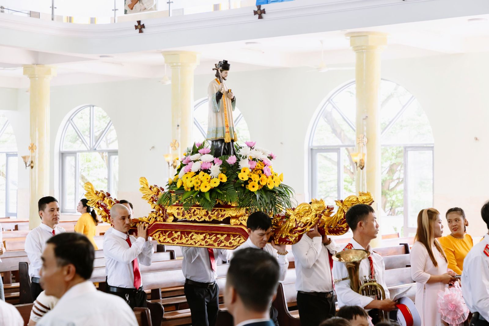 Thánh lễ được cử hành trong bầu khí trang nghiêm nhưng cũng đong đầy sự ấm áp gia đình. Những lời kinh, tiếng hát hòa quyện với tâm tình tạ ơn, xin ơn và phó thác. Các nghi thức phụng vụ được chuẩn bị chu đáo, nhịp nhàng thể hiện tấm lòng kính yêu đối với Thánh Bổn Mạng và tinh thần trách nhiệm của cộng đoàn.