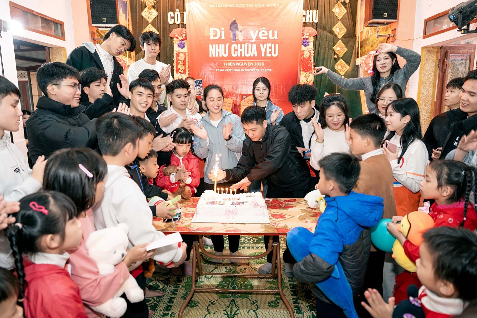 Sau những giờ phút sinh hoạt đầy năng lượng, đoàn tiếp tục trao quà và cắt bánh thổi nến mừng sinh nhật cho các em. Niềm vui giản dị ấy đã trở thành khoảnh khắc đáng nhớ, khi từng lời chúc, từng cái ôm nhỏ bé đều chứa đựng sự quan tâm chân thành.