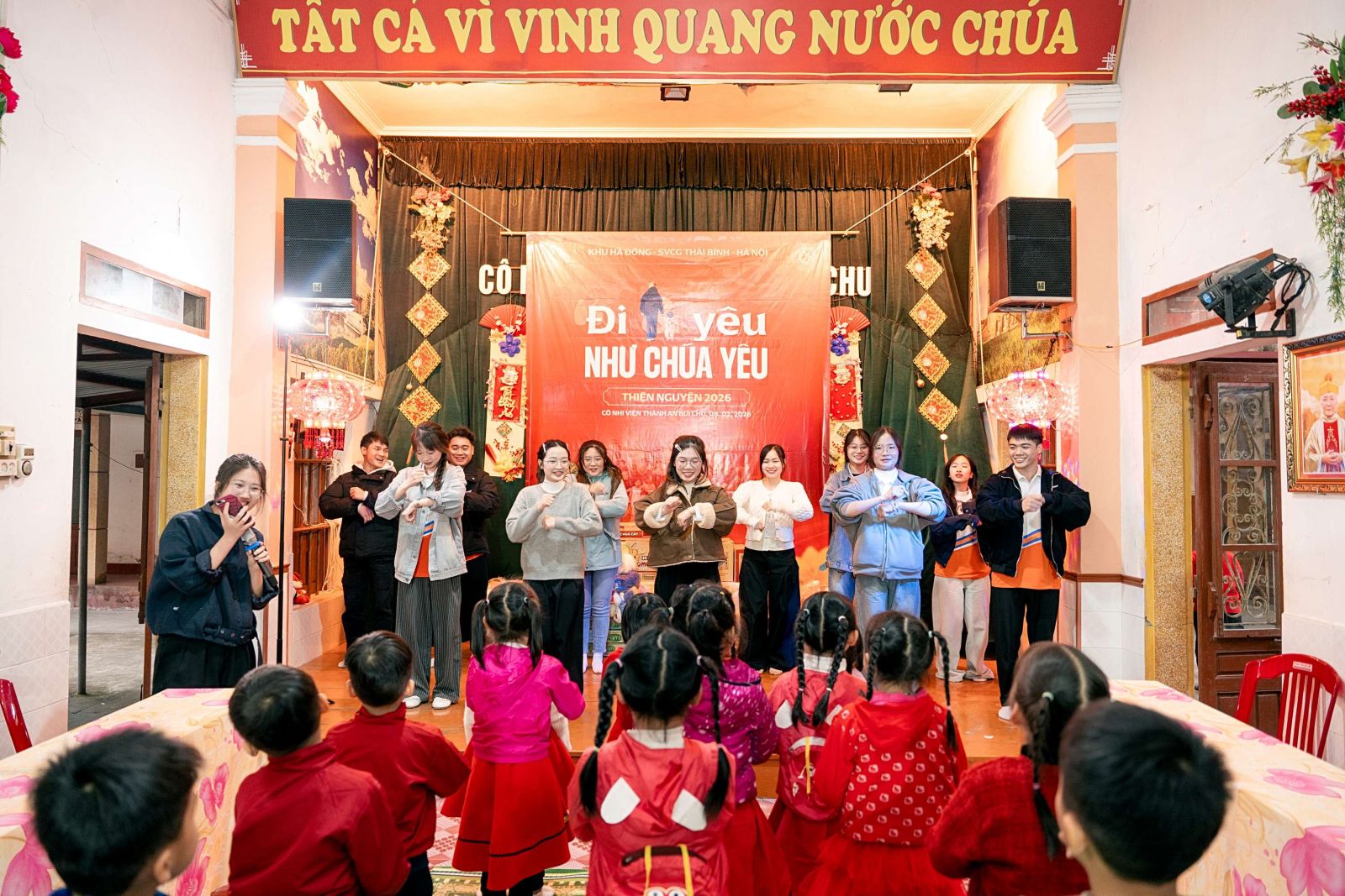 Đến 13g00, Khu Hà Đông bắt đầu tổ chức sinh hoạt chung cùng các em. Không khí mái ấm như bừng sáng bởi những tiết mục văn nghệ sôi động, những trò chơi tập thể đầy tiếng cười và sự háo hức. Tiếng vỗ tay, tiếng reo hò hòa quyện cùng những ánh mắt long lanh niềm vui đã tạo nên một buổi chiều thật rộn ràng. Không còn khoảng cách tuổi tác hay hoàn cảnh, chỉ còn lại những trái tim trẻ trung cùng chung một nhịp đập yêu thương.