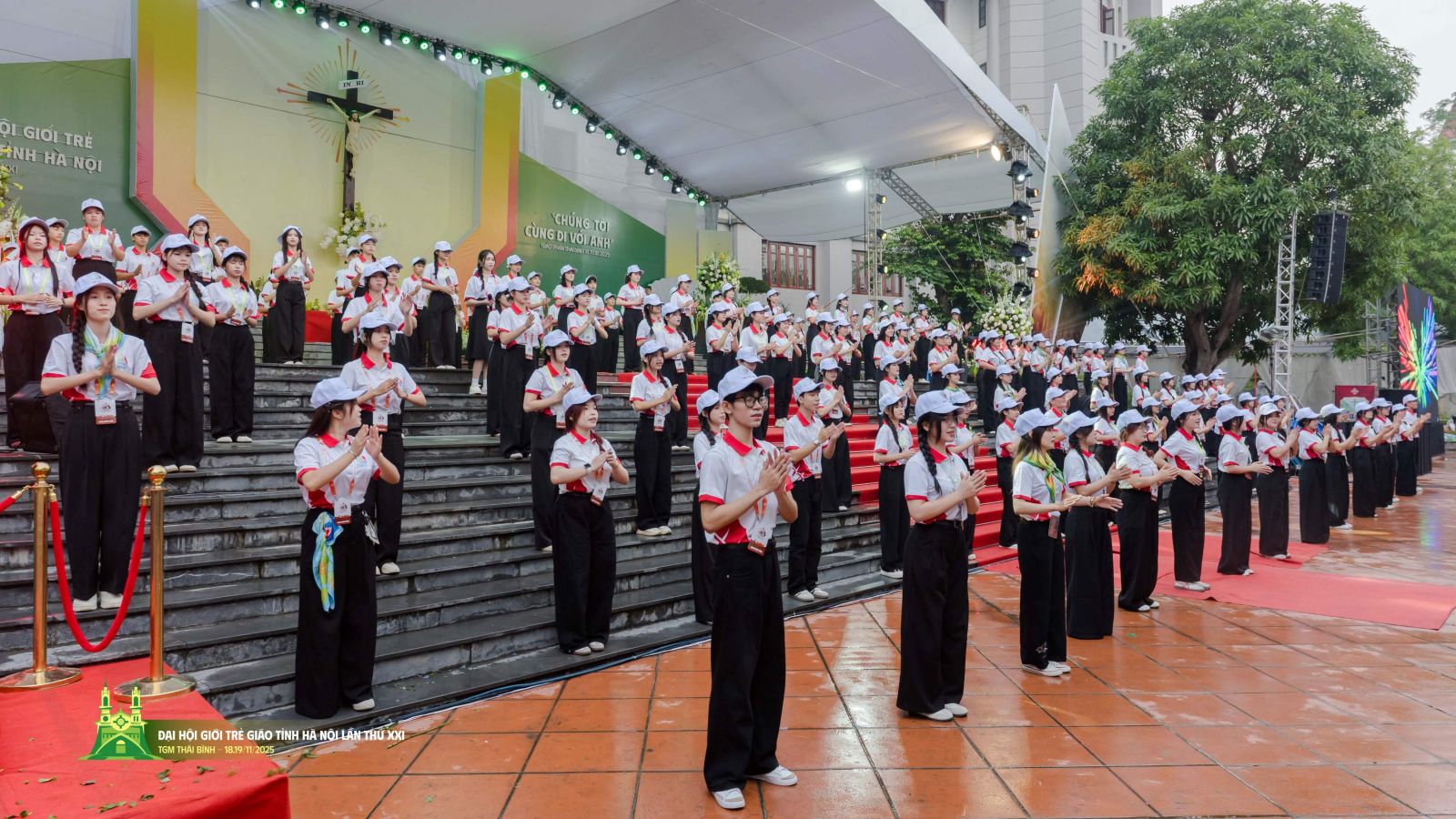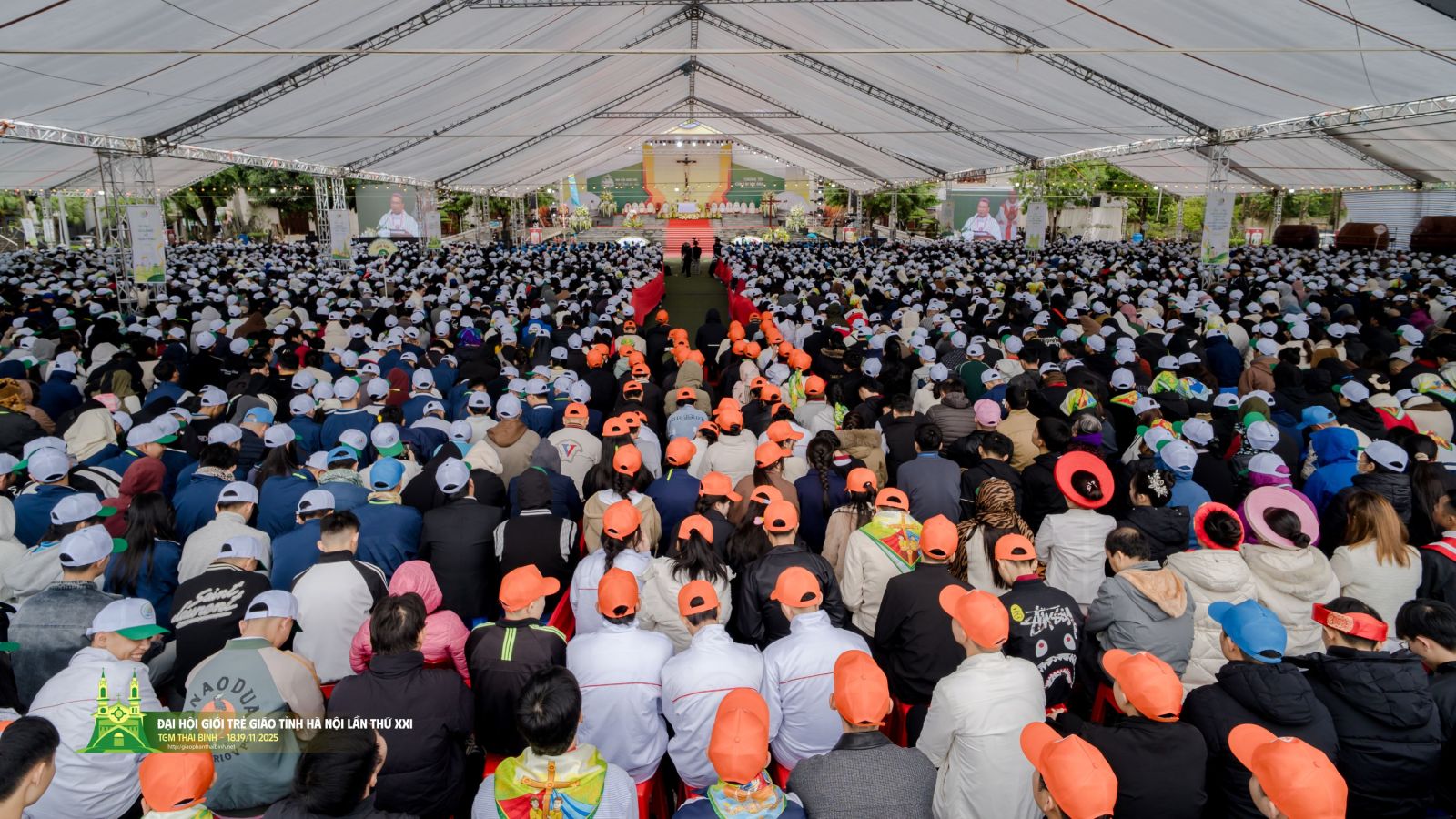 Từ sáng sớm, bầu khí của ngày đại hội đã rộn ràng trên khuôn viên đại hội khi từng đoàn giới trẻ từ các giáo phận quy tụ về trong niềm vui và sự hào hứng. Ngay từ 05g30, khi trời còn mờ sương và giá lạnh mùa đông vẫn bao phủ không gian, các bạn trẻ đã có mặt đông đủ để khởi động ngày mới. Những vũ khúc cử điệu, những câu hô vang đầy năng lượng, cùng không khí sinh hoạt chung đã nhanh chóng xua tan cái lạnh đầu ngày. Sự trẻ trung, sôi nổi và tinh thần hiệp nhất của gần 10.000 bạn trẻ đến từ các Giáo phận đã tạo nên một bức tranh rực rỡ, mở đầu cho một ngày đầy ý nghĩa.