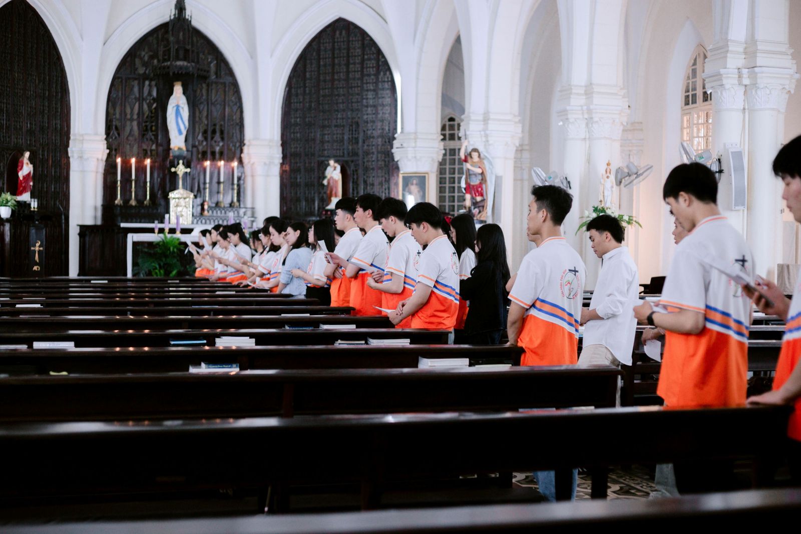 Bầu khí lắng đọng được tiếp nối trong giờ Chầu Thánh Thể từ lúc 08g45 - 09g45. Trước sự hiện diện thánh thiêng của Thiên Chúa, mỗi người như được mời gọi bước vào một cuộc đối thoại thầm lặng, nơi không còn những ồn ào bên ngoài, chỉ còn lại sự chân thật của tâm hồn. Bên cạnh đó, các bạn bước vào khoảng thời gian thinh lặng và lãnh nhận Bí tích Hòa giải, như một hành trình trở về sâu xa hơn với Thiên Chúa. Sau đó, mọi người cùng tập hát, chuẩn bị cho Thánh lễ sốt sắng hơn.
