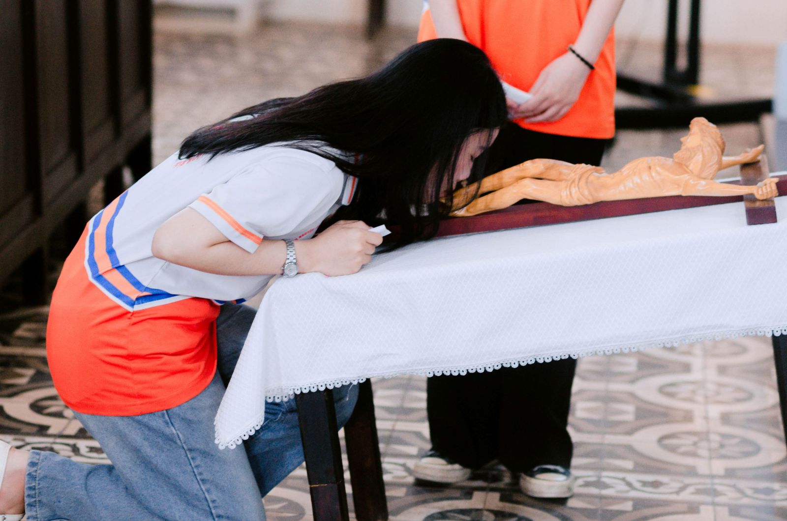 Sau Thánh lễ, các bạn sinh viên dùng bữa trưa trước khi cùng nhau bước đi trong chặng Đàng Thánh Giá lúc 13g00. Từng bước chân, từng chặng dừng lại không chỉ là việc tưởng niệm cuộc khổ nạn của Đức Kitô, mà còn là dịp để mỗi người nhìn lại “thập giá” của chính mình, là những khó khăn, thử thách, những vấp ngã trong đời sống để học cách đón nhận và bước tiếp với niềm tin.