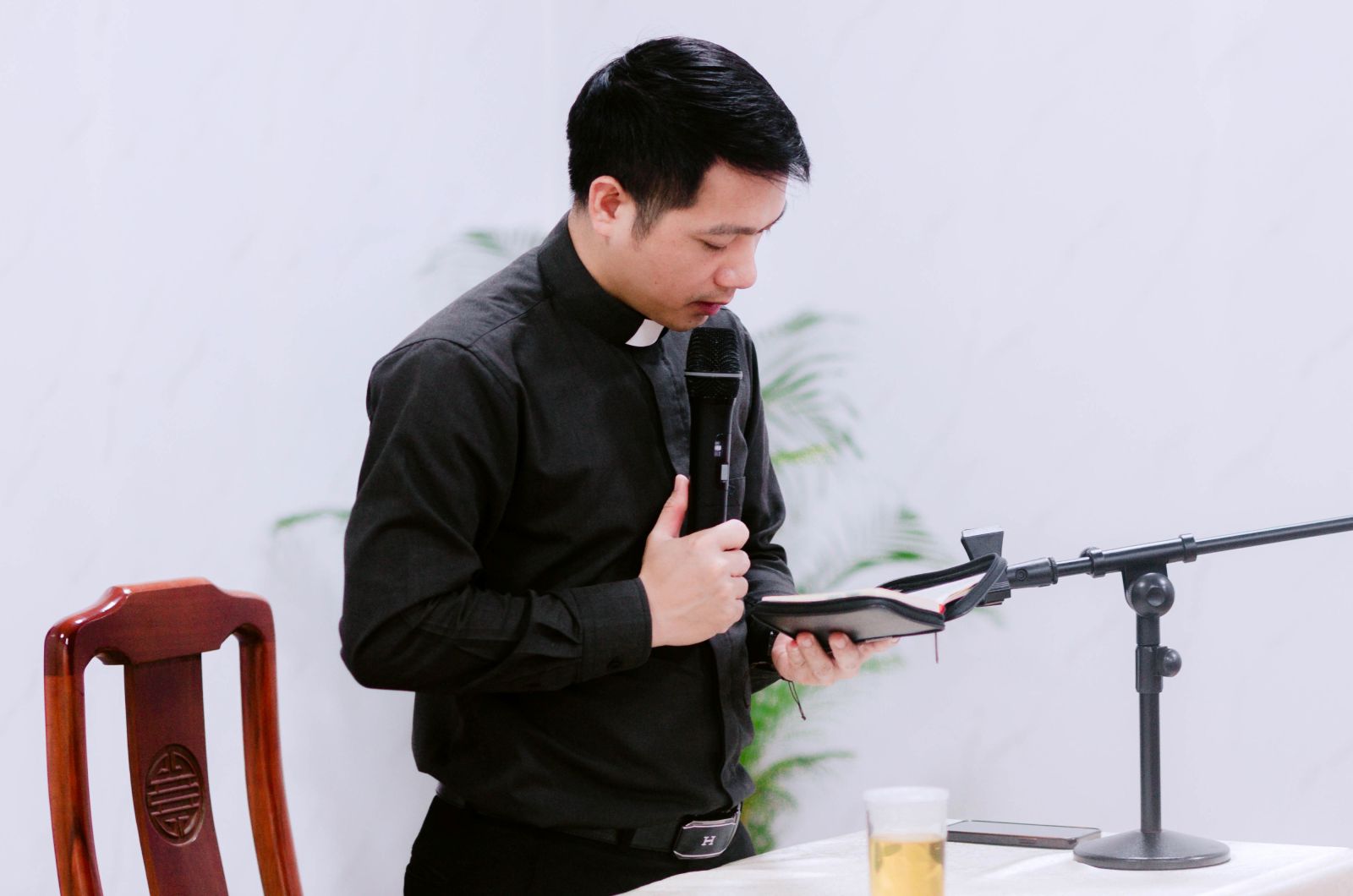 Từ 07g30, các bạn sinh viên tập trung, ổn định và chuẩn bị tâm hồn bước vào ngày tĩnh tâm. Sau đó vào lúc 8g00, mở đầu ngày tĩnh tâm, qua giờ giảng đầy gần gũi và sâu sắc, cha Đặc trách Đaminh Nguyễn Văn Tuân đã gợi lại hình ảnh Đức Giêsu ăn chay 40 ngày và chịu cám dỗ trong hoang địa. Từ đó, cha giúp mỗi người nhận ra những cám dỗ rất quen thuộc trong đời sống: khi con người dễ chạy theo nhu cầu vật chất, dễ thử thách Thiên Chúa trong đức tin, hay bị hấp dẫn bởi danh vọng và những giá trị chóng qua. Nhưng giữa những điều đó, điều quan trọng nhất vẫn là biết lắng nghe thánh ý Chúa và đặt Ngài làm trung tâm cho mọi chọn lựa.