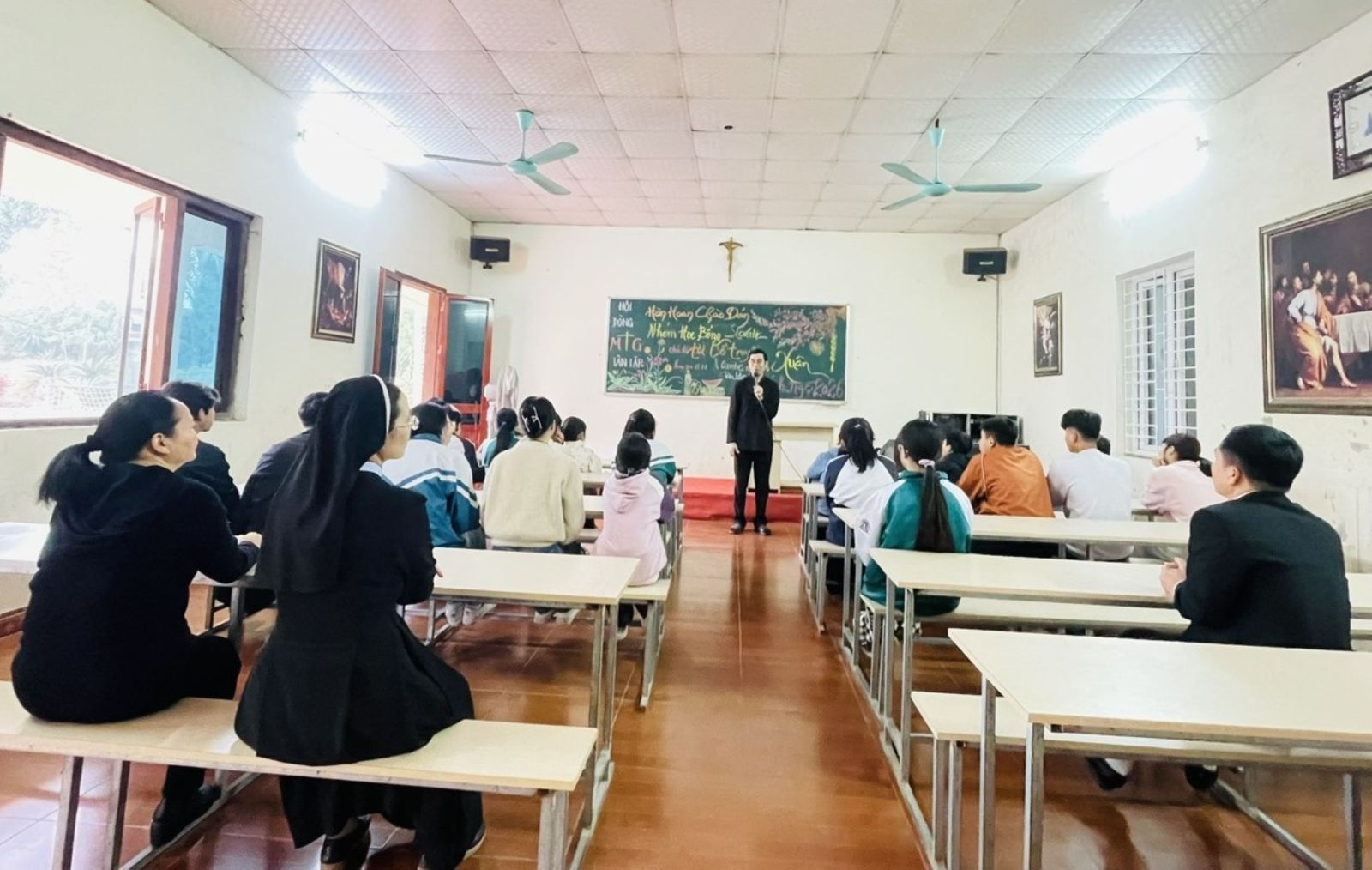 Chương trình bắt đầu lúc 08g00 với phần chia sẻ của ông Giuse Nguyễn Văn Mạnh- Chủ tịch HĐMV Giáo xứ Hưng Yên, với chủ đề “Gương vượt khó”. Từ chính kinh nghiệm của bản thân, ông nhấn mạnh rằng xuất phát điểm không phải là yếu tố quyết định, điều quan trọng là mỗi người cần có ý chí, nghị lực và sự kiên trì. Mỗi người, dù hoàn cảnh ban đầu có thể thiếu thốn hoặc không thuận lợi, nhưng nếu biết cố gắng vươn lên, phấn đấu, biến ước mơ thành đích nhắm để hướng về phía trước với niềm tin và hy vọng vào Ơn Chúa ban thì sẽ đạt được những thành quả tốt đẹp trong cuộc sống. Chính bản thân ông Giuse cũng là người đi lên từ tay trắng và giờ đã có một tiệm bánh Tài Lộc với hơn 20 công nhân tại đường Điện Biên, tỉnh Hưng Yên.