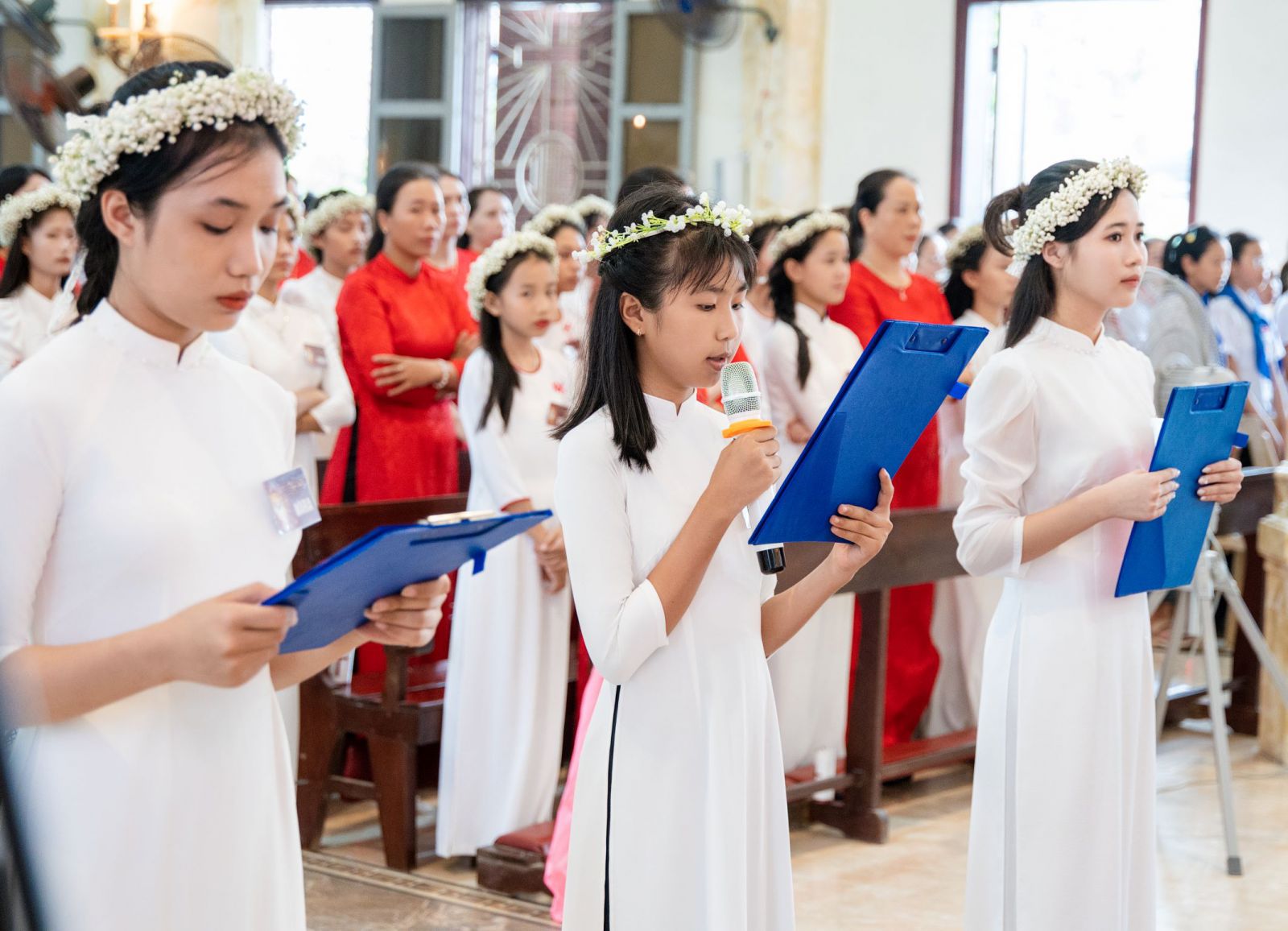 Sau lời nguyện hiệp lễ, một em đại diện cho 186 em được lãnh nhận Bí tích Thêm Sức hôm nay nói lên lời tạ ơn Thiên Chúa, tri ân cảm tạ Đức cha Đa Minh, quý cha, quý thầy chủng sinh, quý thầy cô giáo lý viên, quý phụ huynh, bố mẹ đỡ đầu và toàn thể cộng đoàn đã tạo mọi điều kiện để các em được đón nhận hồng ân Thêm Sức hôm nay.
