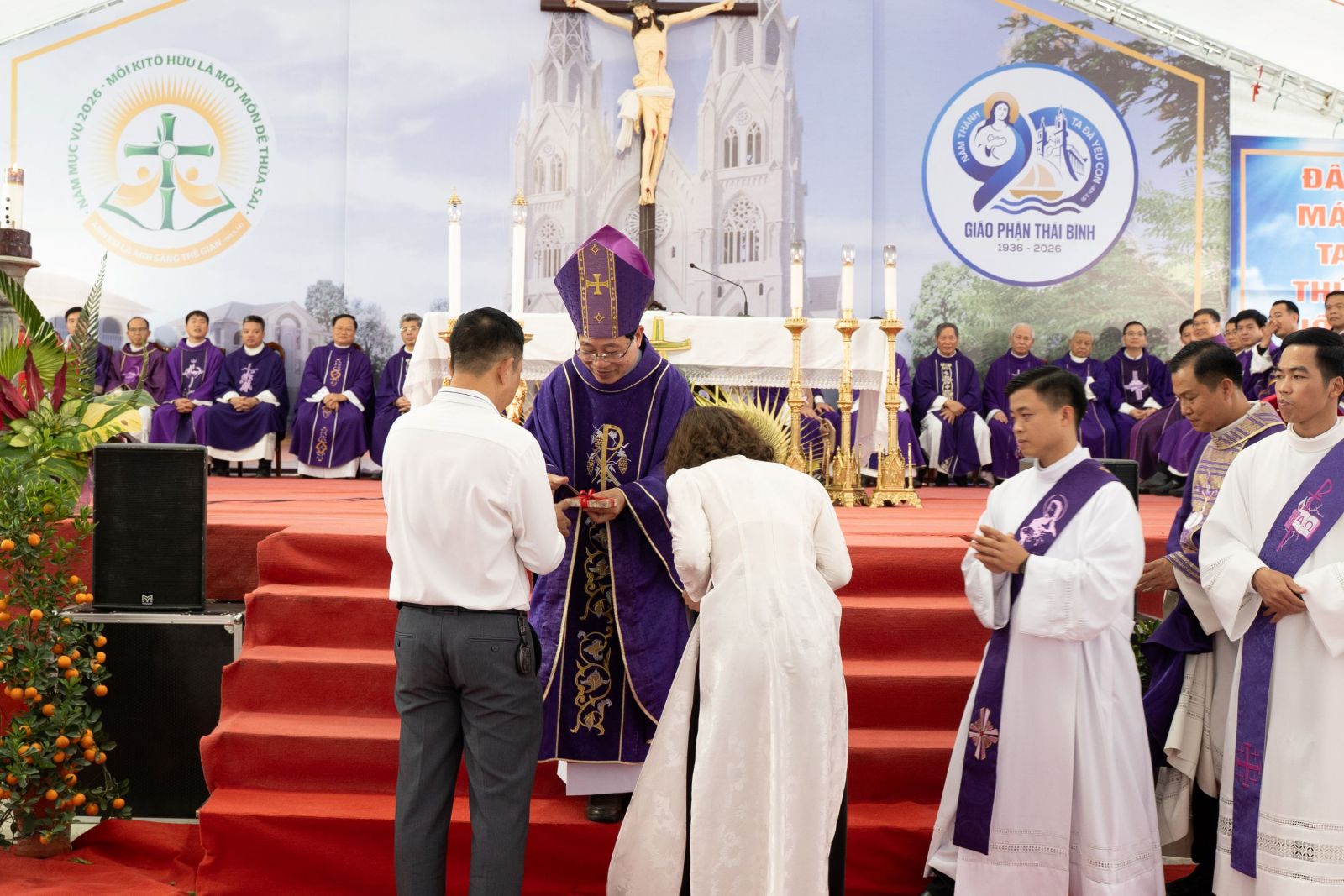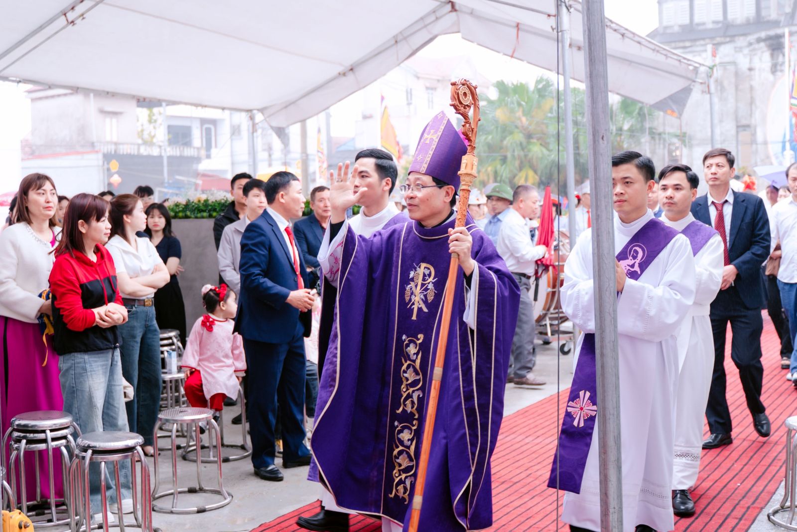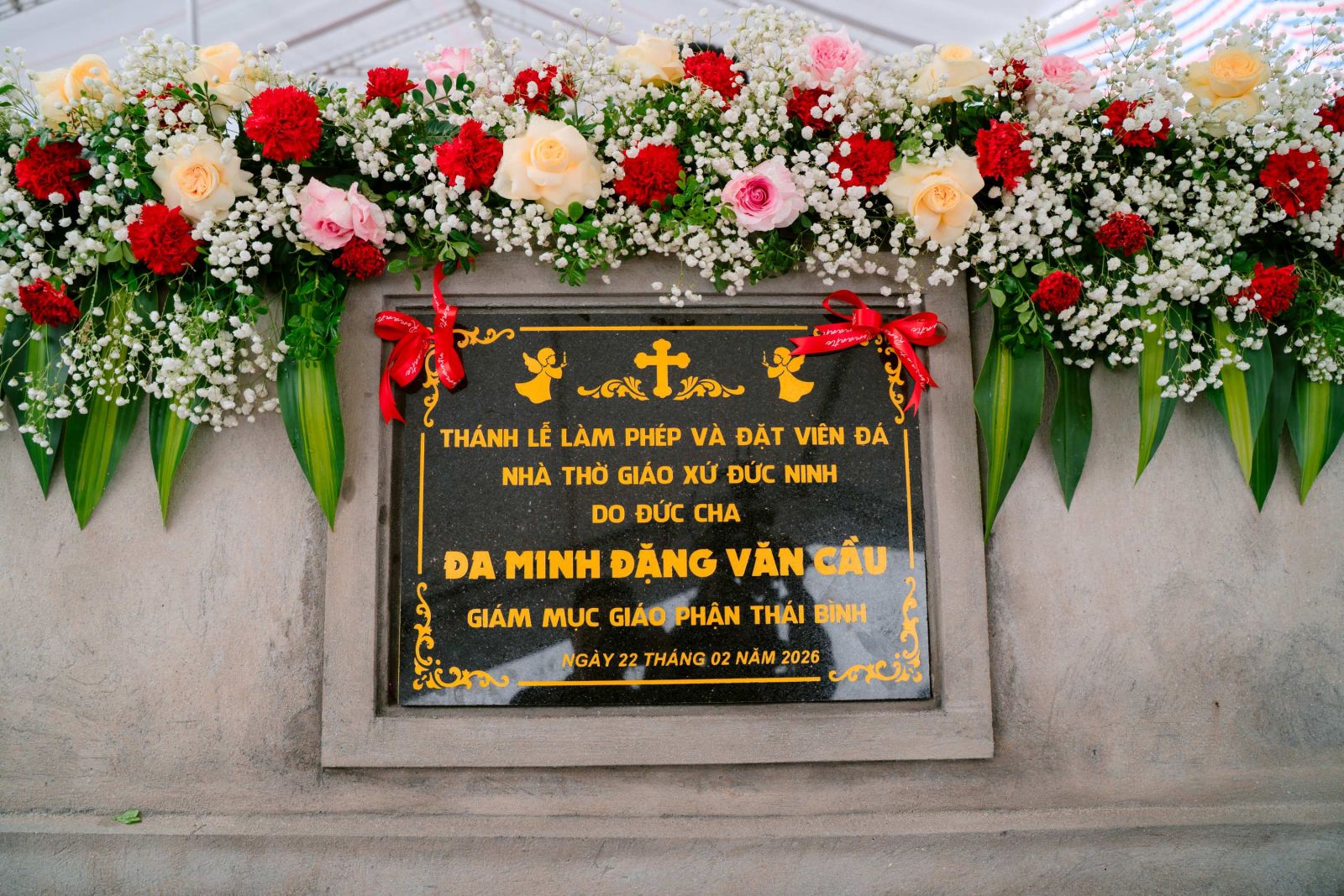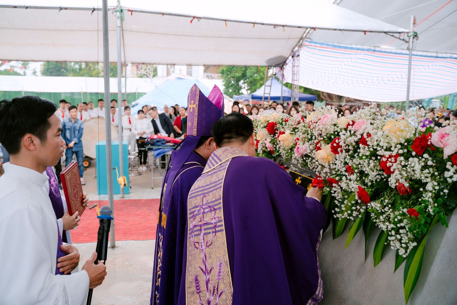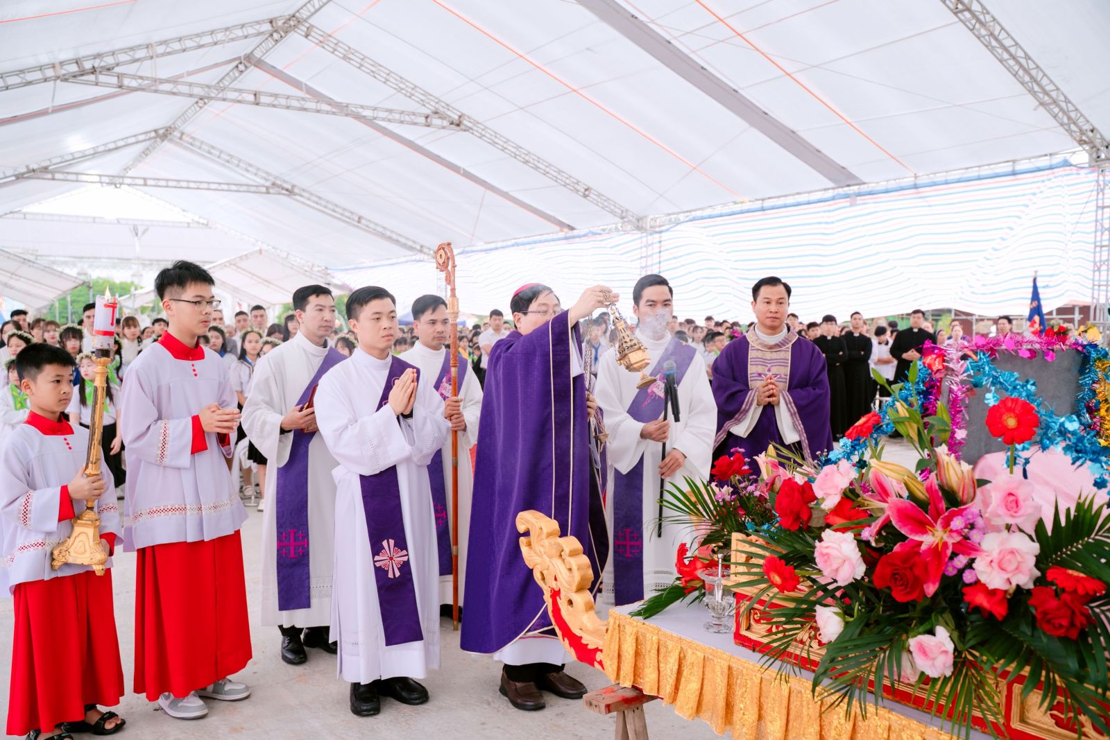 Sau bài giảng, Đức cha Đa Minh đã cử hành nghi thức làm phép viên đá đầu tiên xây dựng nhà thờ mới. Nghi thức diễn ra trang trọng và đầy xúc động, như lời phó thác trọn vẹn công trình cho sự quan phòng của Thiên Chúa, từ khởi sự cho đến ngày hoàn thành.