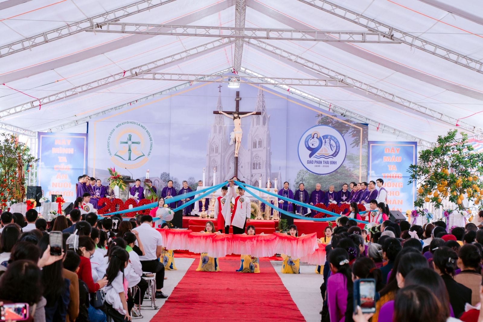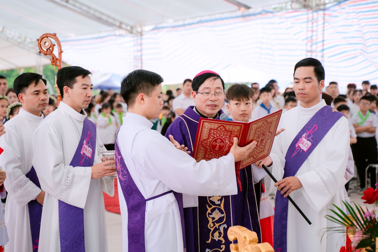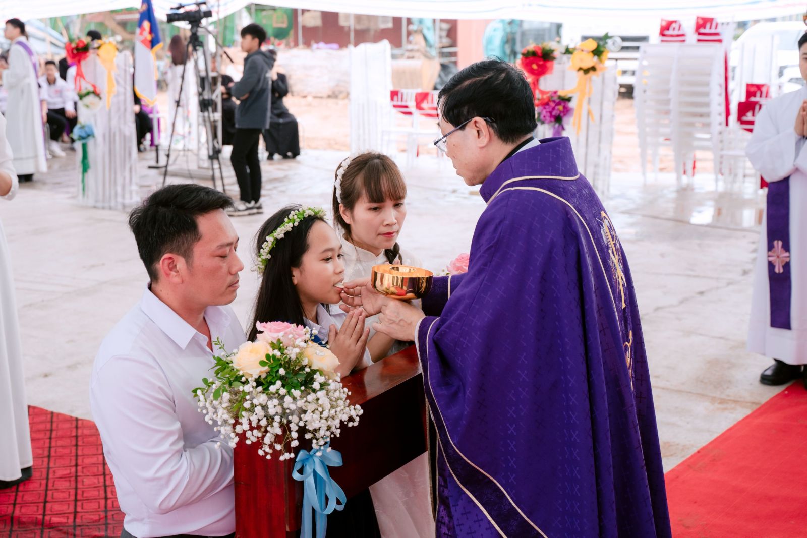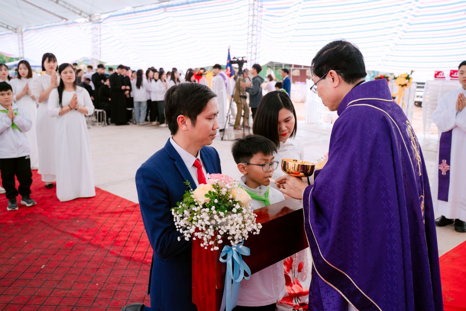 Thánh lễ và nghi thức làm phép viên đá đầu tiên xây dựng nhà thờ mới của giáo xứ do Đức cha Đa Minh – Giám mục Giáo phận chủ sự. Đồng tế với ngài có quý linh mục trong và ngoài giáo phận, cùng sự hiện diện của quý thầy, quý tu sĩ và đông đảo cộng đoàn. Trong Thánh lễ có 31 em được rước Chúa Giêsu Thánh Thể lần đầu tiên trong đời. Bầu khí phụng vụ diễn ra trang nghiêm, sốt sắng, thấm đượm niềm vui và hy vọng của cộng đoàn, của các em trong sự kiện trọng đại của cuộc đời khi bước sang trang sử mới.